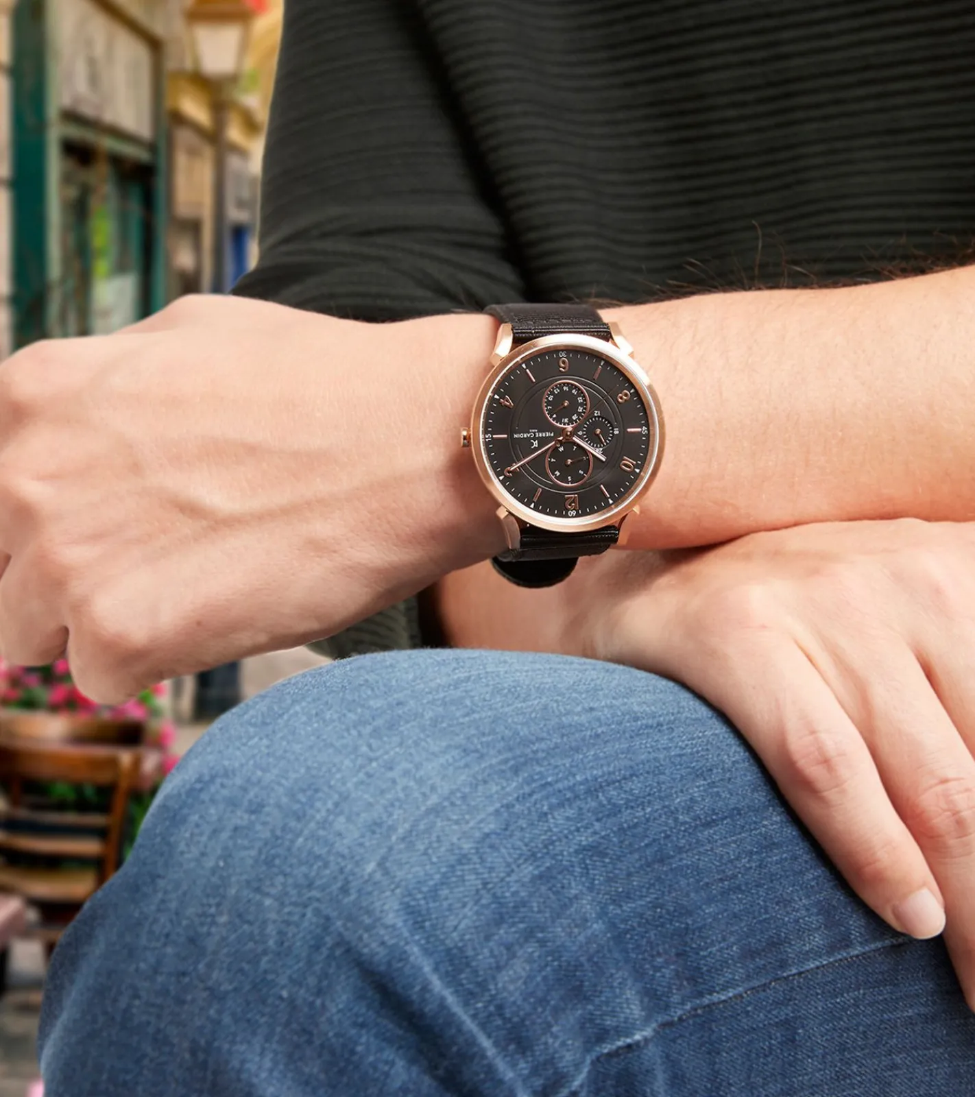 Pierre Cardin Herren Armband-Uhr mit Multi-Ziffernblatt analoge Quarz-Uhr mit Textil-Armband 3ATM 44mm CPI.2035 Schwarz/Kupfer