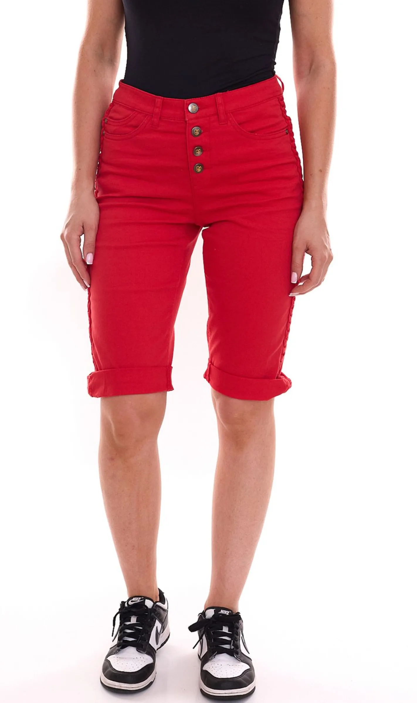 DELMAO Damen Sommer-Hose Jeans-Shorts Baumwoll-Hose 97270327 Rot