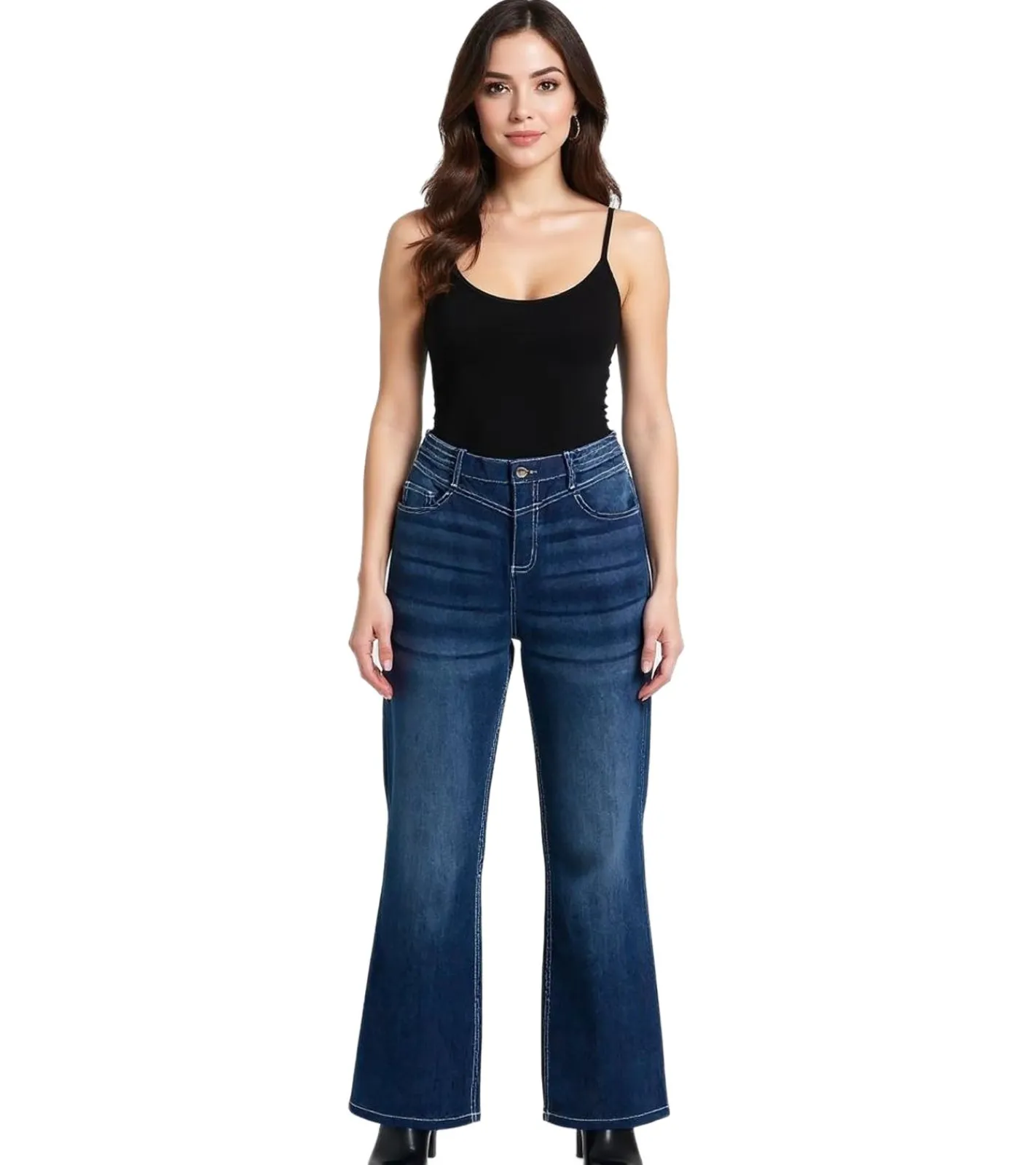 Damen Jeans-Hose Schlag-Hose Denim Jeans im 5-Pocket-Style 937274 Blau