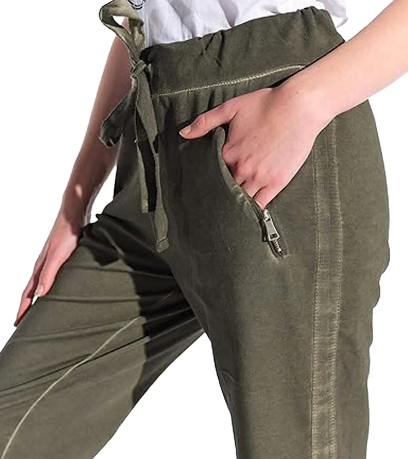 vestino Damen Jogg-Pant mit Vintage-Färbung Stoff-Hose mit Zipp-Taschen 901579 Grün