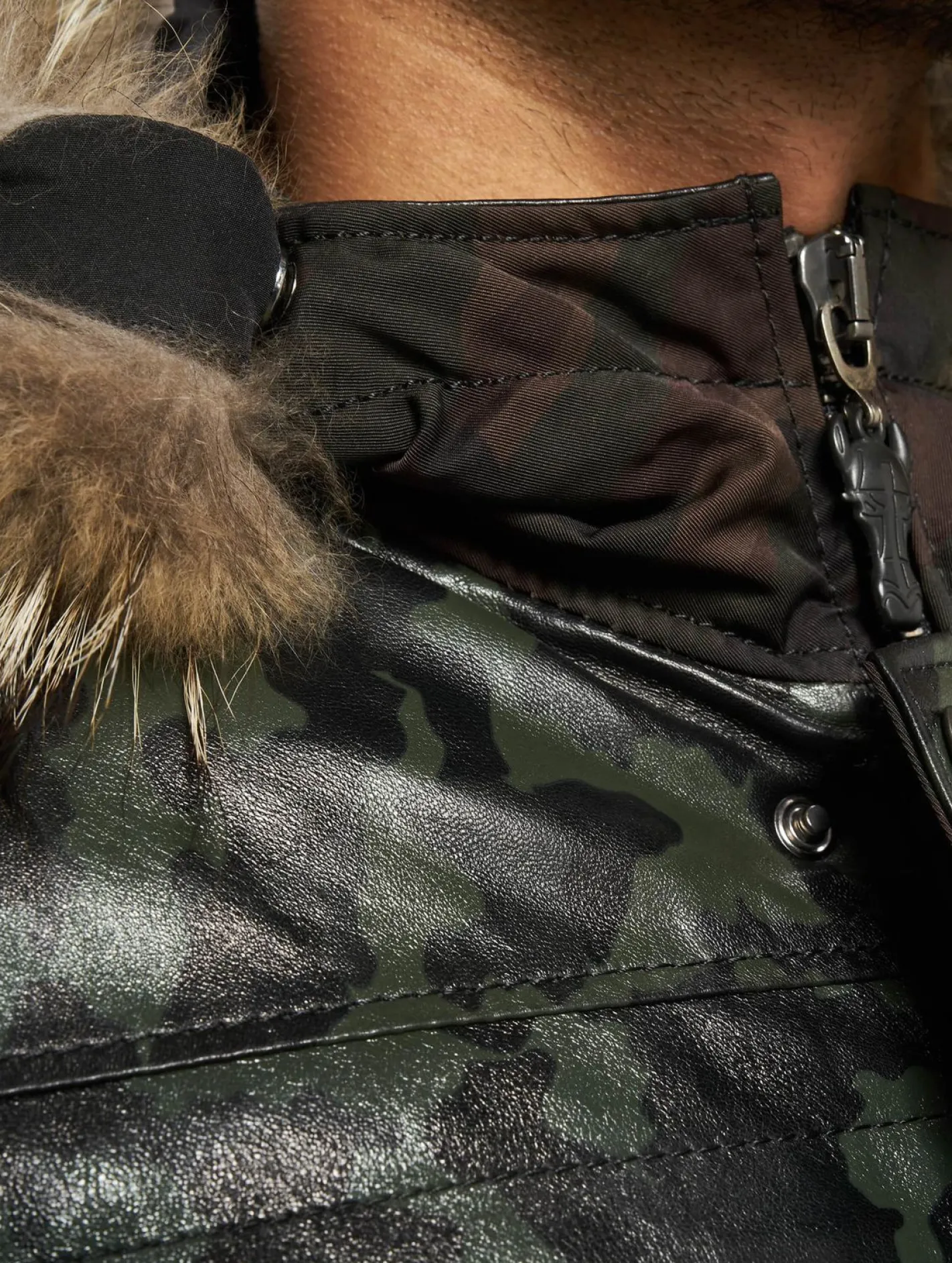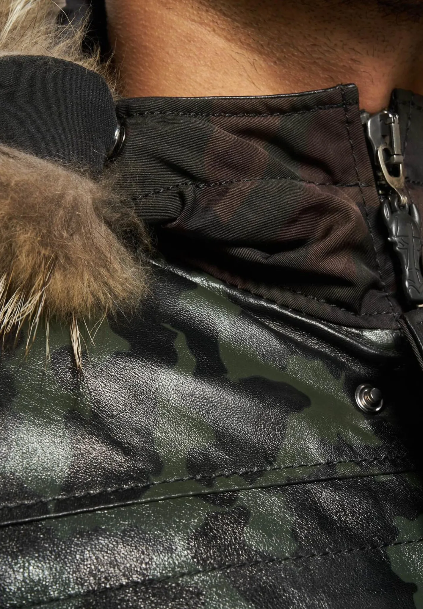 - Kapuze außen: 100% Fell