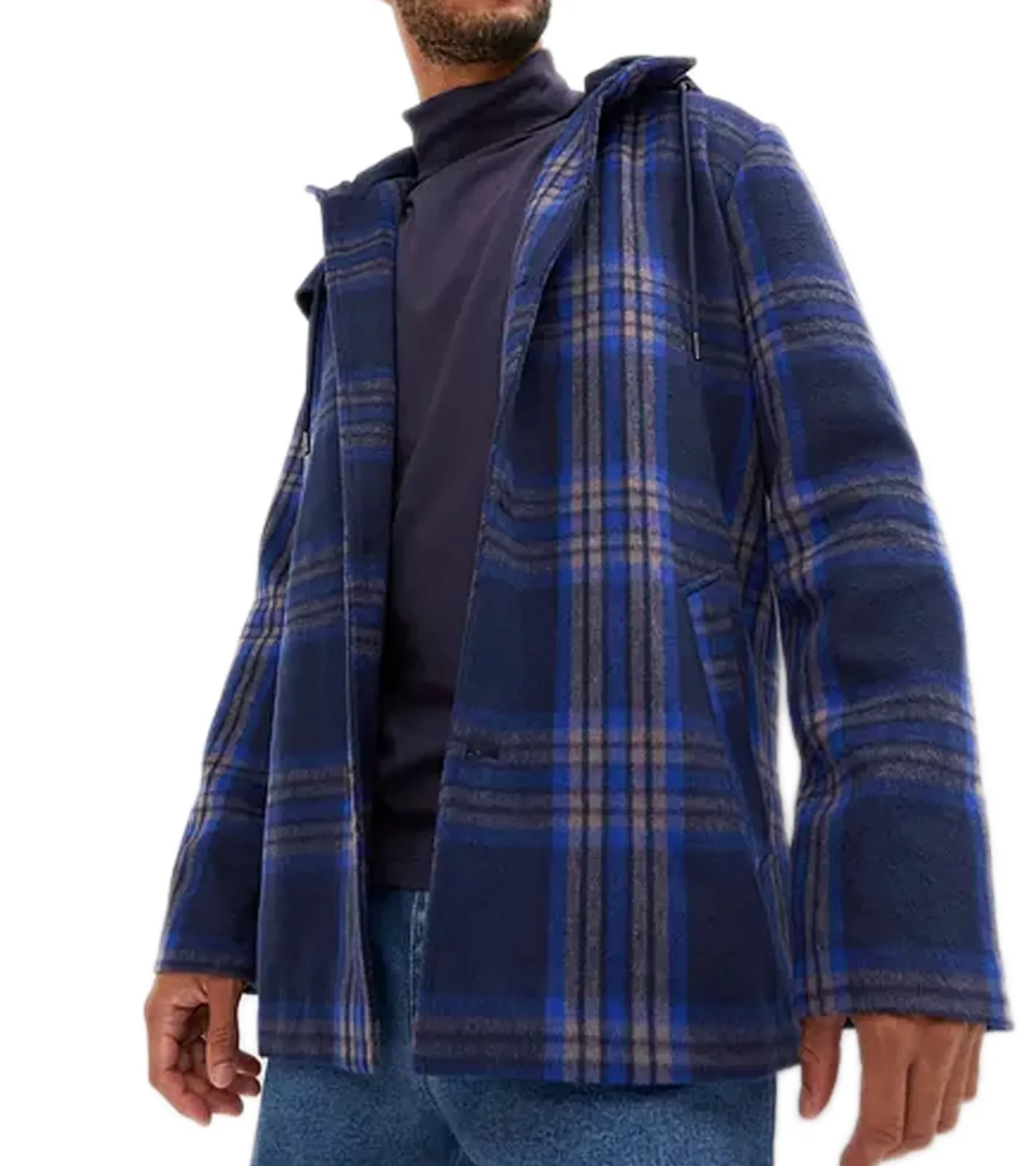 karierte Übergangs-Jacke für Herren mit Baumwollanteil Sweat-Jacke mit abnehmbarer Kapuze und Karomuster 913708 Blau