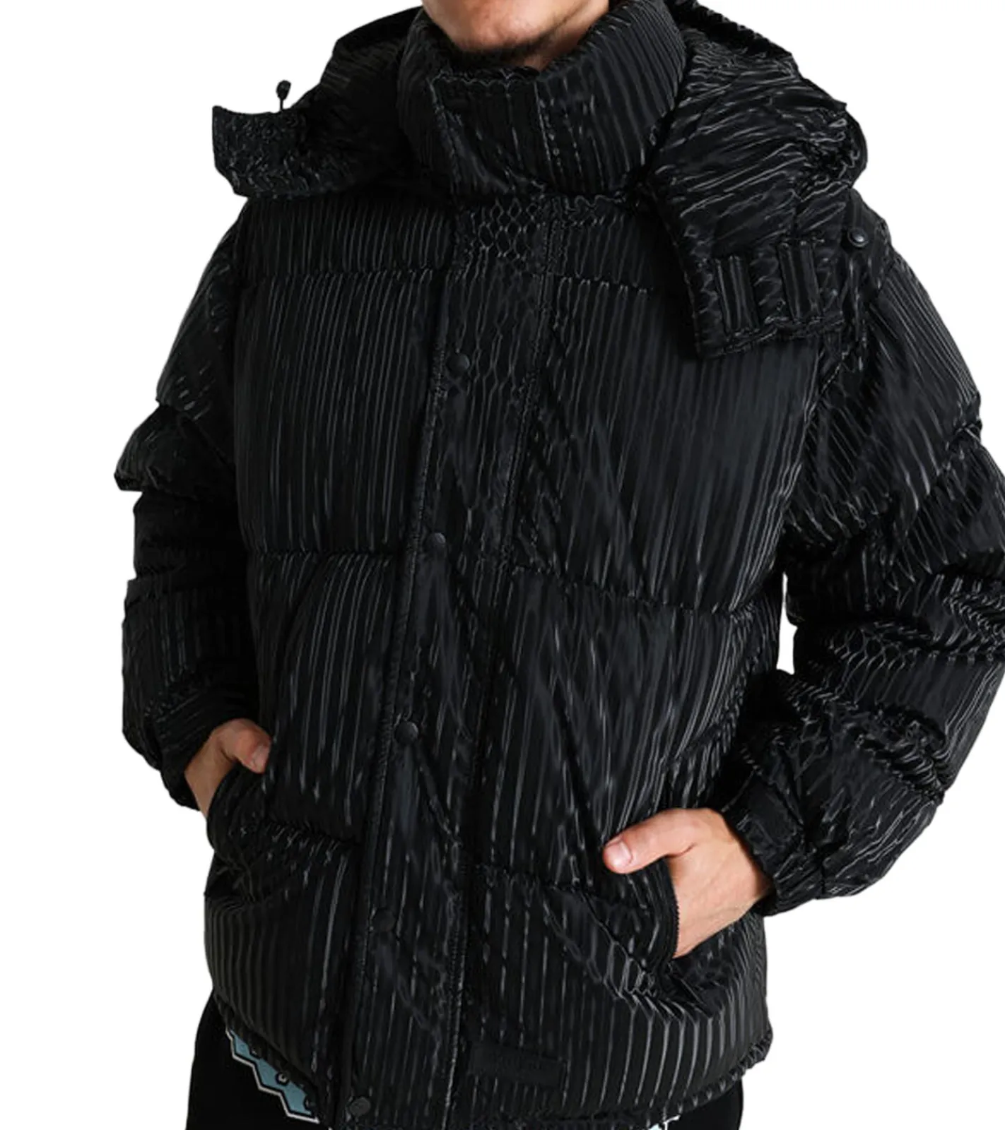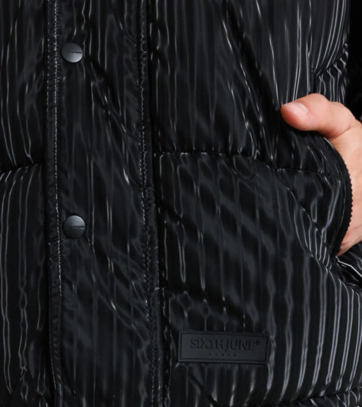 Sixth June Herren Puffer-Jacke im Oversized-Stil Winter-Jacke glänzende Outdoor-Jacke mit gewelltem Steppstoff M23360MOW Schwarz