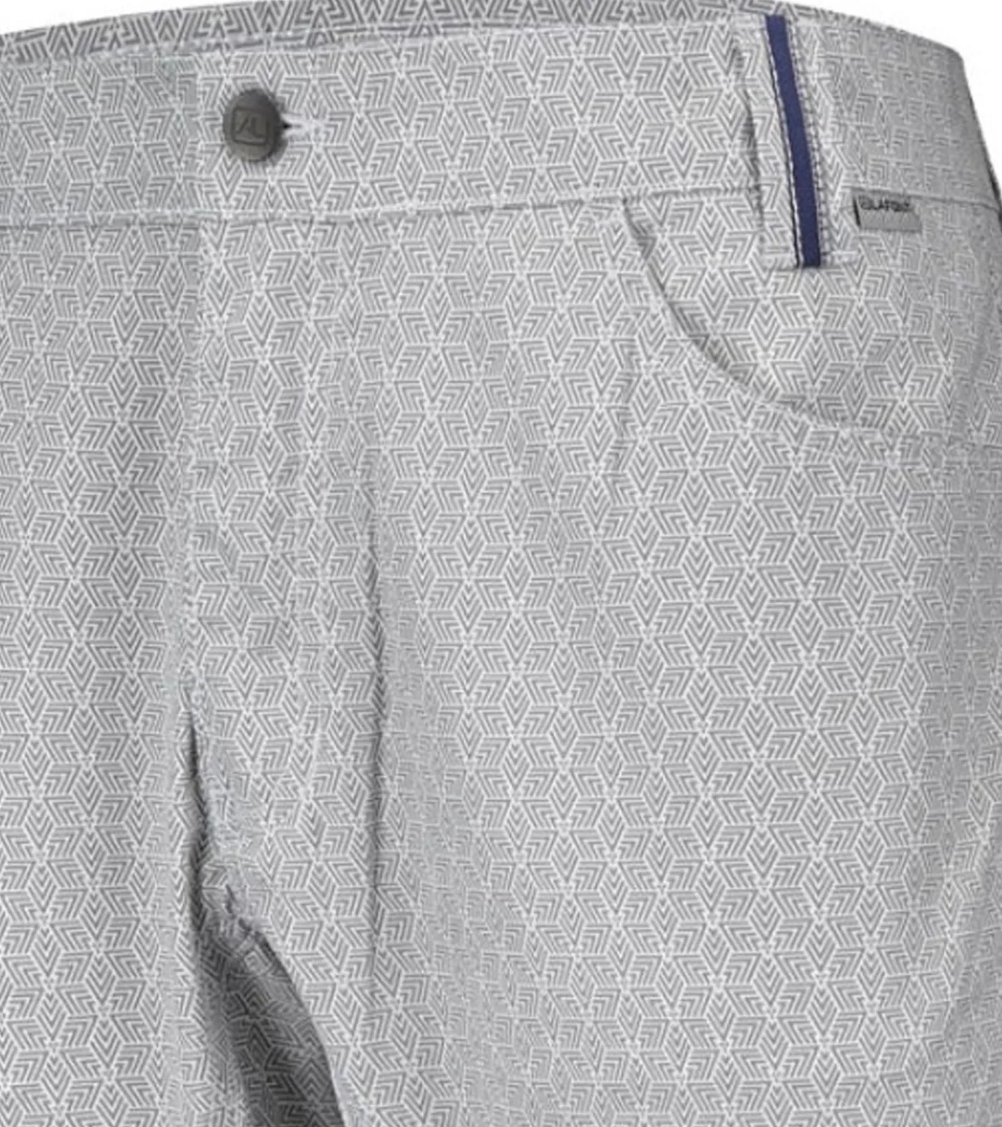 - Gerader Bund und Schlaufe vorne links mit Jacquard-Twill-Applikation