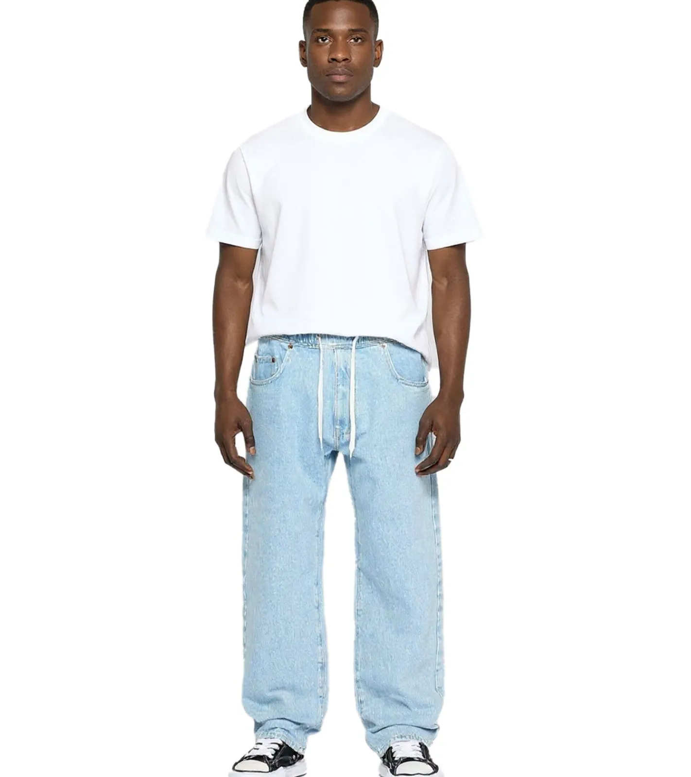 stylische Herren Jeans im Jogger-Stil Denim-Hose Baggy Leg mit Bindeband BR-12000-300 Hell-Blau