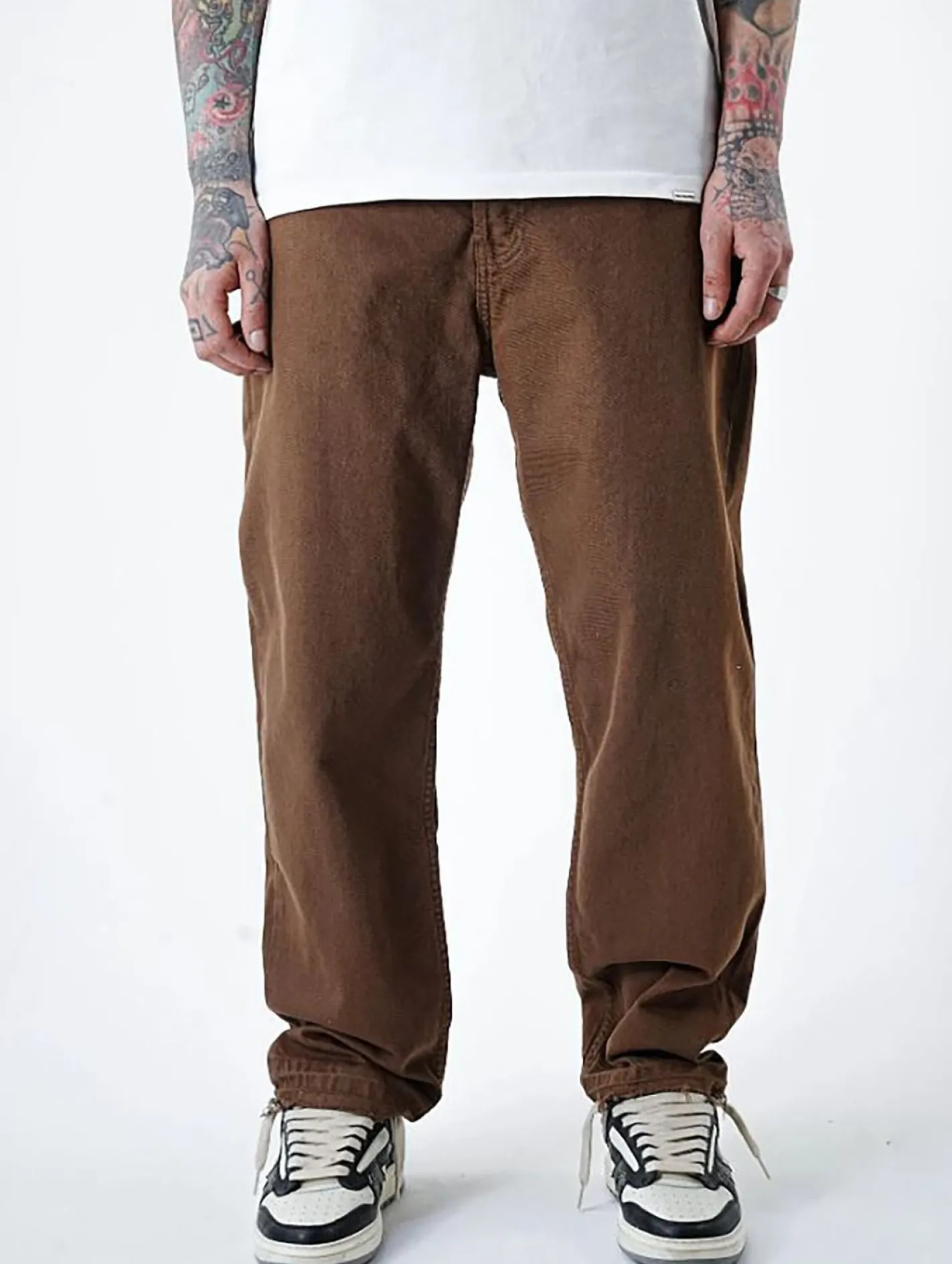 UNEFFECTED Basic Free Cut Wide Loose Fit Jeans braun