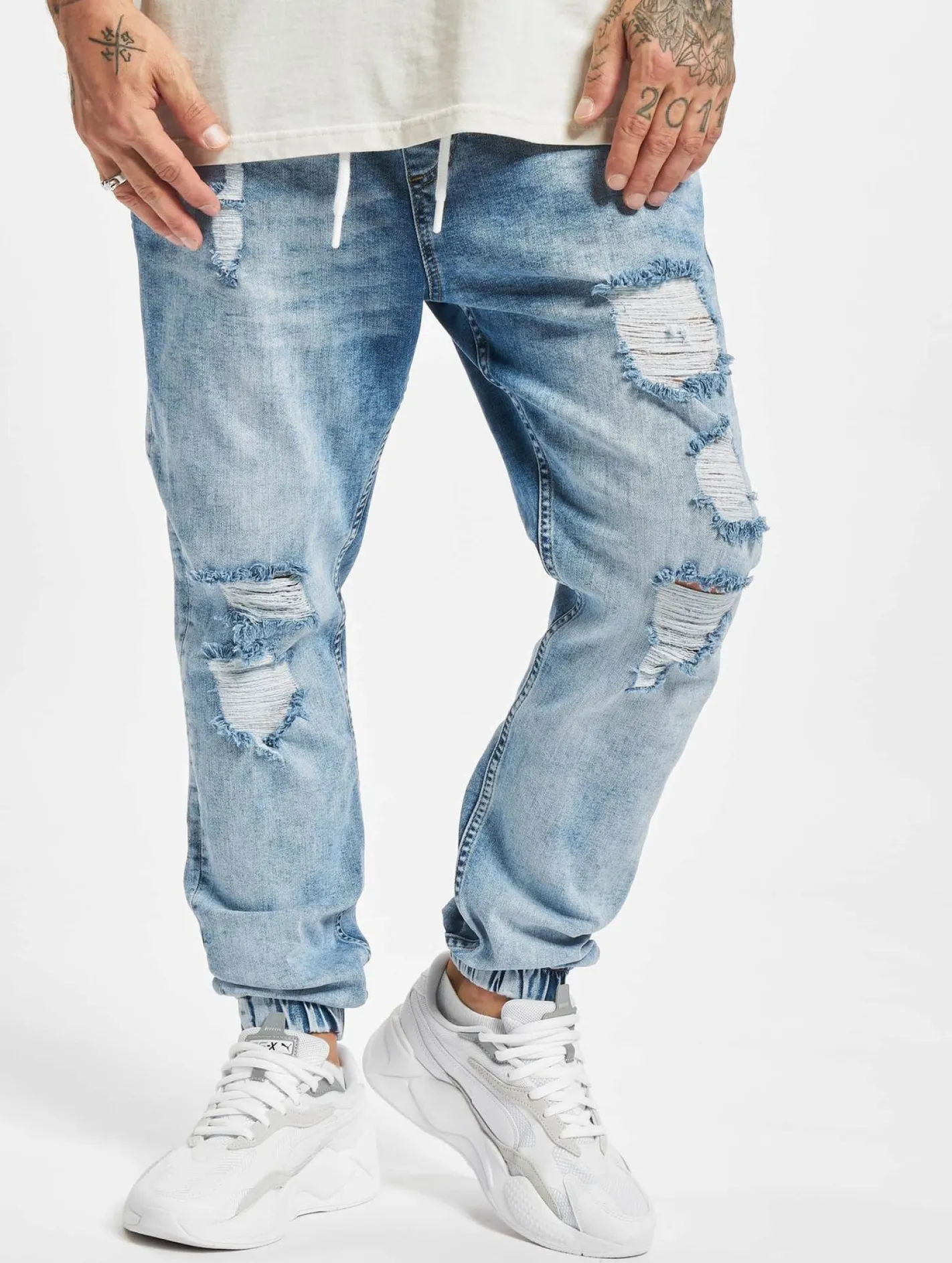 VSCT Clubwear Noah Cuffed Laces Antifit Jeans Blau Stoned