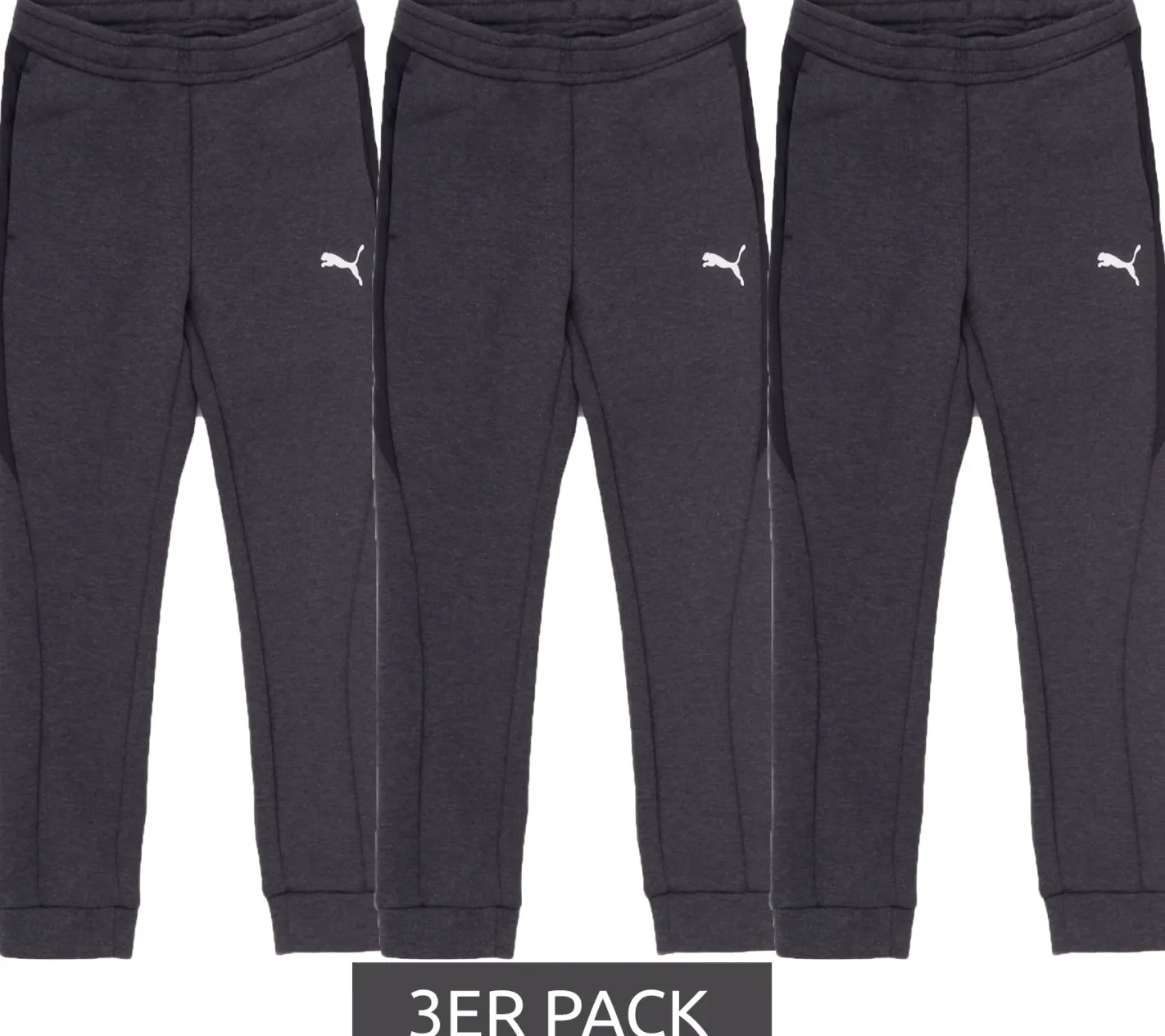 3er Pack PUMA Jogginghose für Jungen und Mädchen Baumwoll-Jogger Sport-Hose Fitness-Hose Homewear 580732 04 Dunkelgrau/Schwarz
