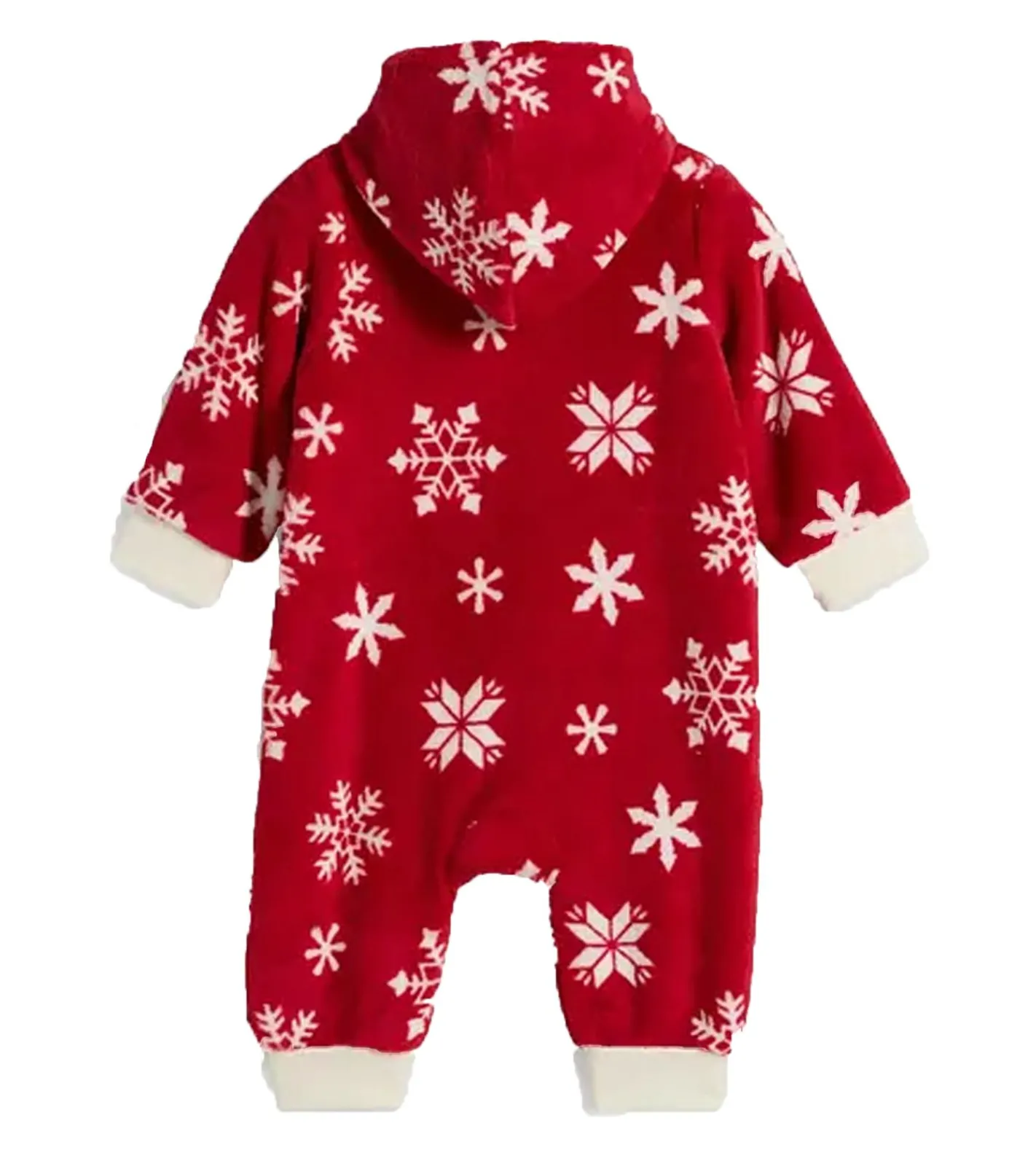 Jumpsuit Kleinkinder Overall Fleece-Anzug mit Kapuze Schneeflocken-Design mit Reißverschluss Baby-Anzug 954927 Rot/Weiß