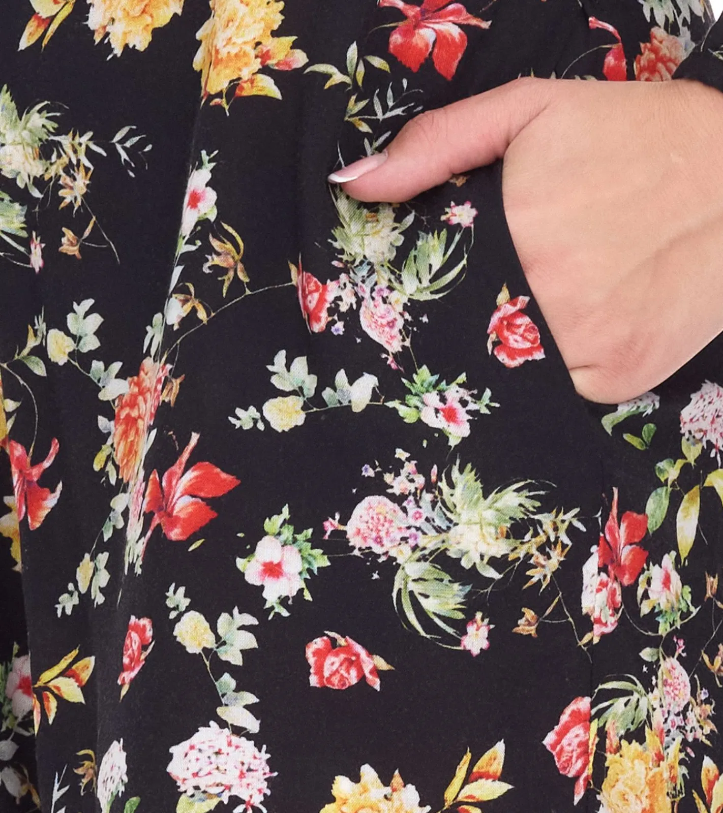 vestino Damen Jumpsuit mit Blumen-Print transparenter Sommer-Einteiler Langarm-Overall 900549 Schwarz
