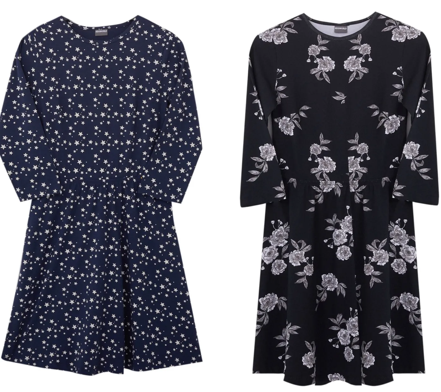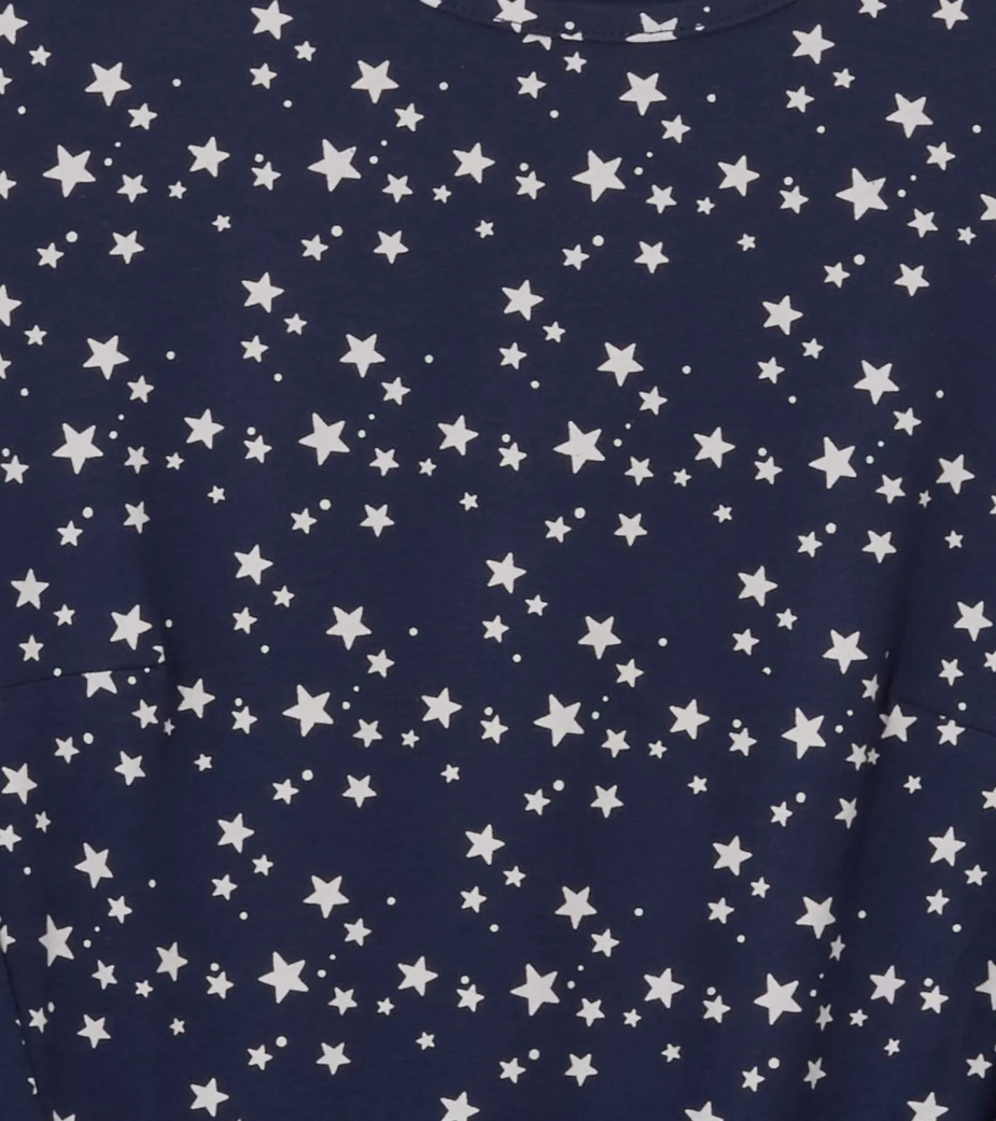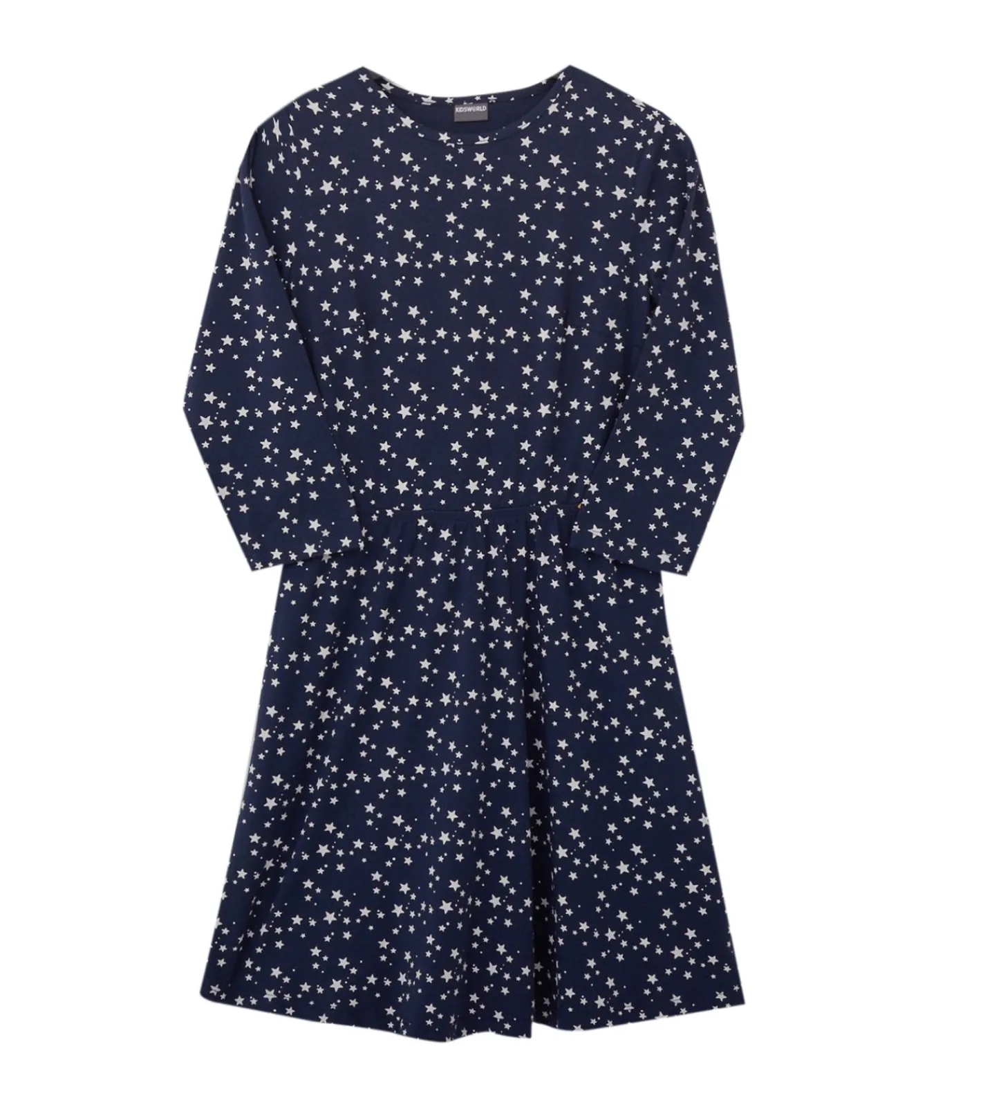 KIDSWORLD Kinder Sommer-Kleid für Mädchen Baumwoll-Kleid mit Allover-Blumen und Sternen-Print Sommer-Kleid Schwarz oder Dunkelblau