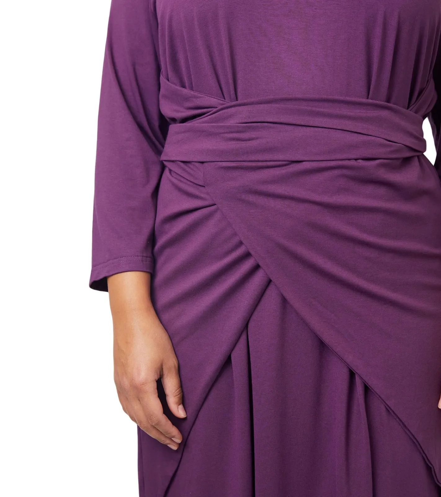 ADIA Damen Wickel-Kleid elegantes Sommer-Kleid zum binden Urlaubs-Kleid mit 3/4-Armen Große Größen 37339213 Violett