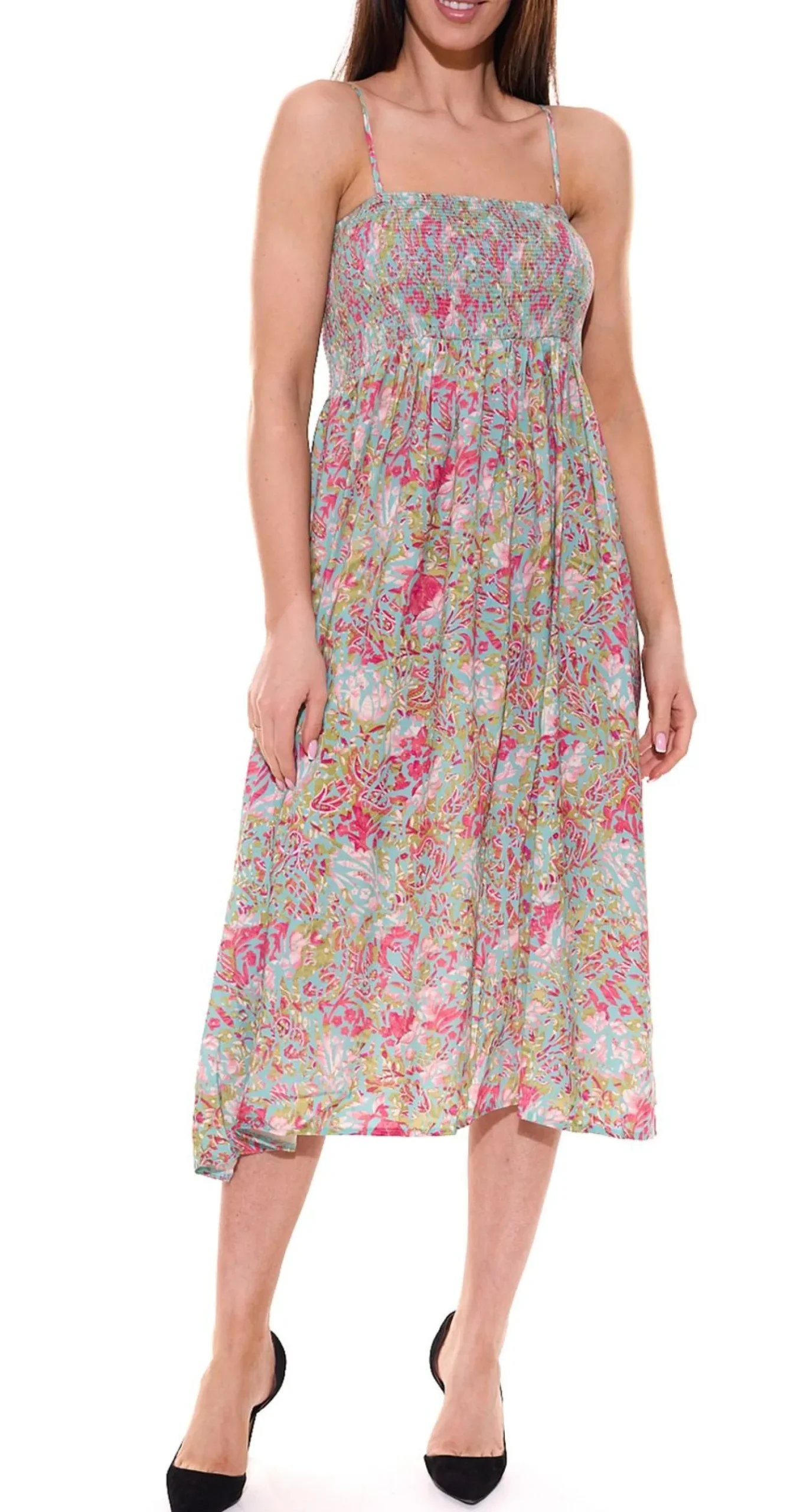 Aniston CASUAL 2 in 1 Midi-Kleid mit abnehmbaren Trägern auch als Rock tragbar Sommer-Kleid mit floralem Print 87089836 Grün/Bunt