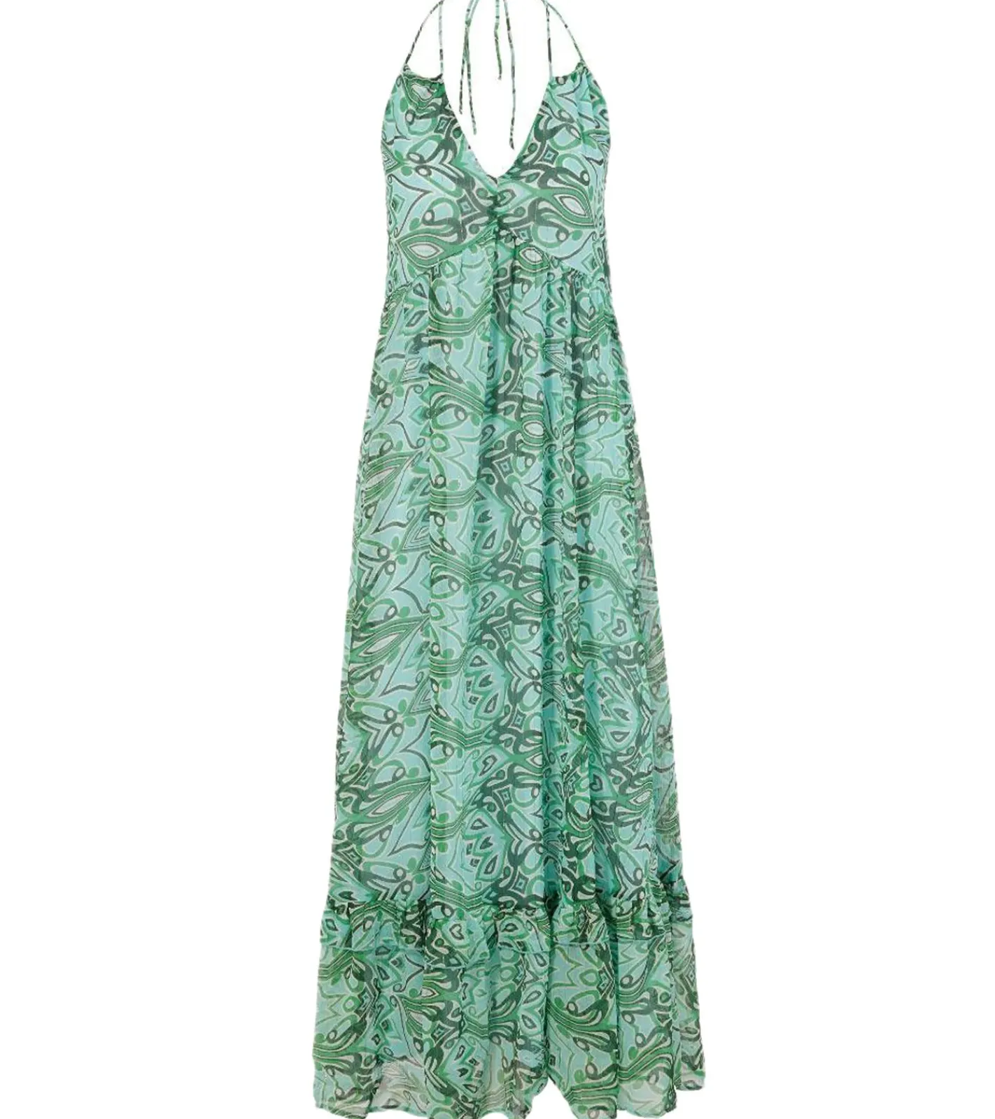 Aniston CASUAL Damen Maxi-Kleid rückenfrei Sommer-Kleid mit Allover-Print 83823237 Grün
