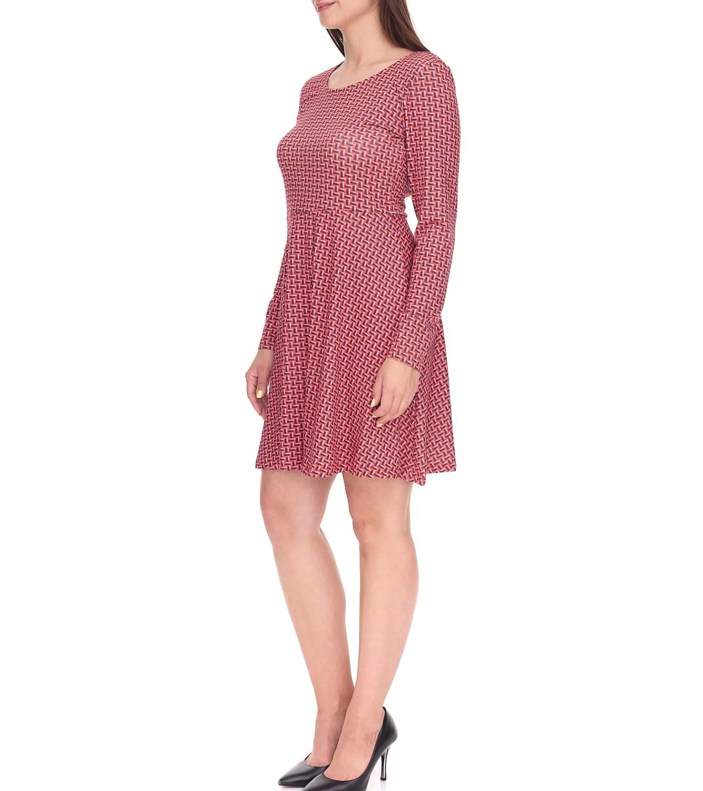 Aniston CASUAL Damen Mini-Kleid stylisches Sommer-Kleid Langarm-Kleid 70060254 Rosa/Schwarz/Rot