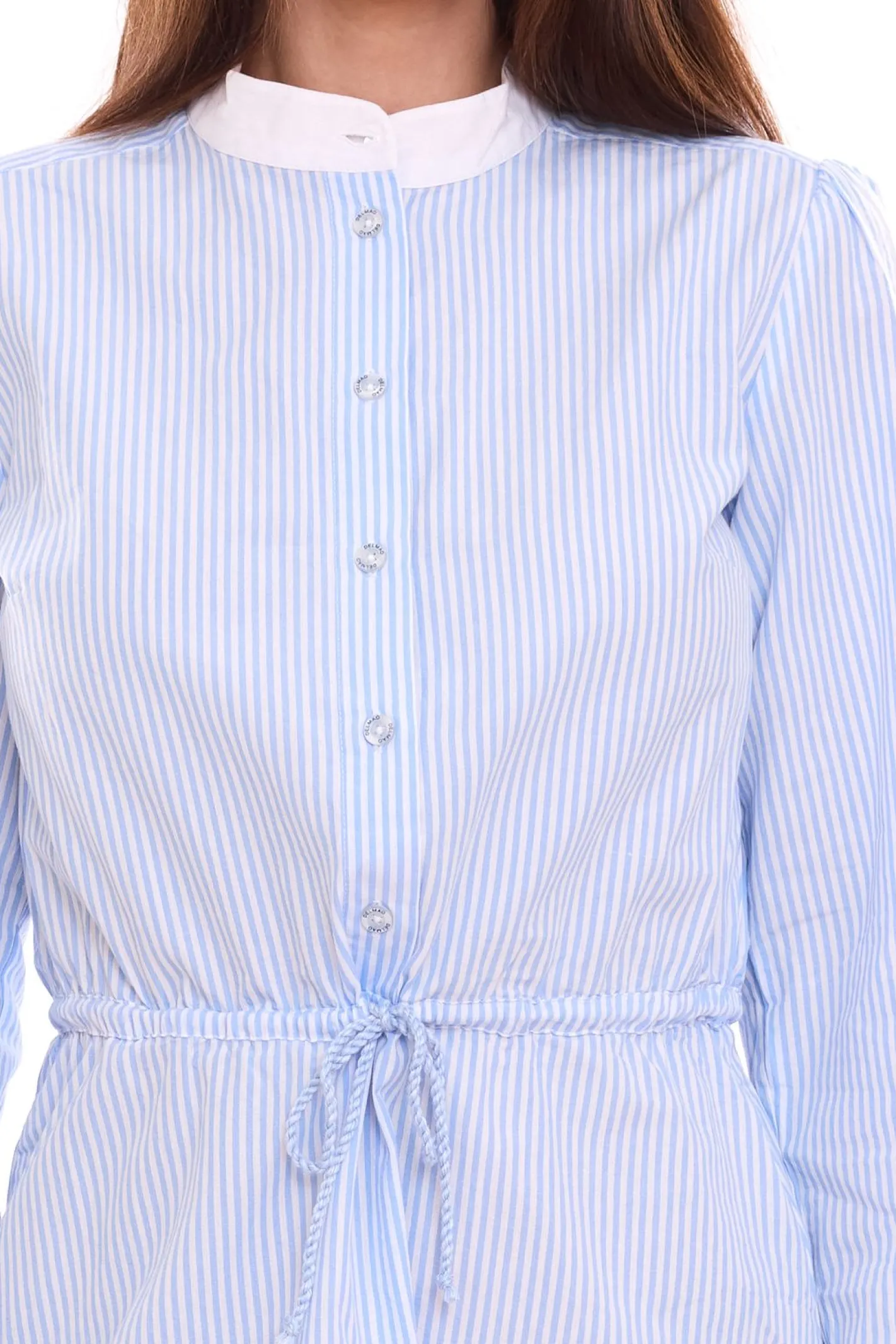 - gestreiftes Blusen-Kleid mit langen Ärmeln