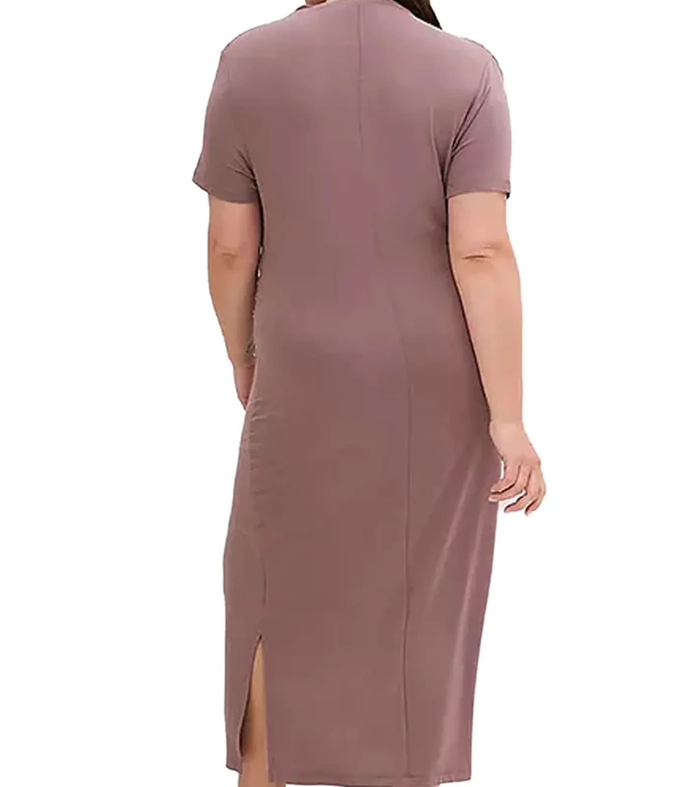 Damen Jersey-Kleid mit Raffungen und Schlitz Figurbetontes-Maxi-Kleid 949480 Braun