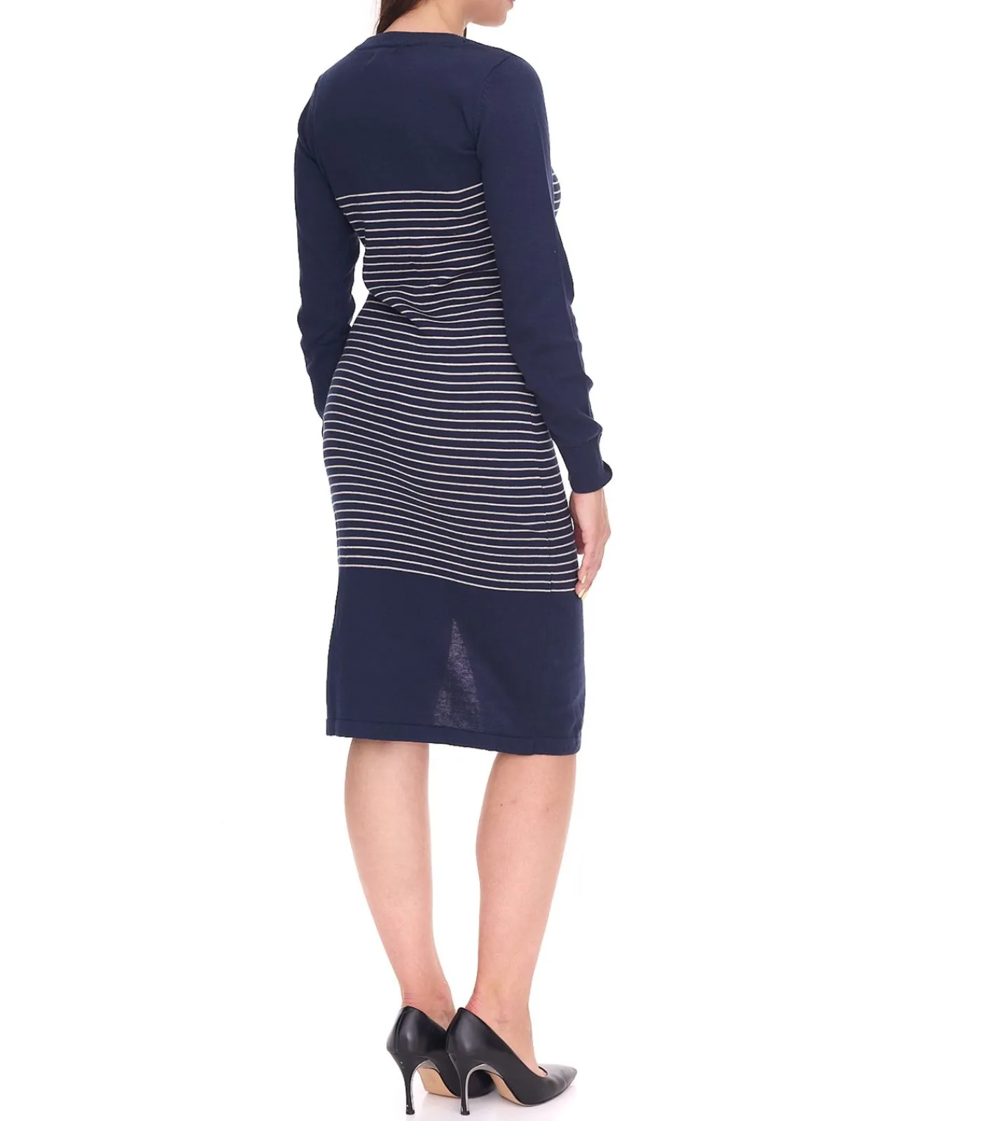 AjC Damen Pullover-Kleid gestreift Midi-Kleid Strick-Kleid 10089317 Blau