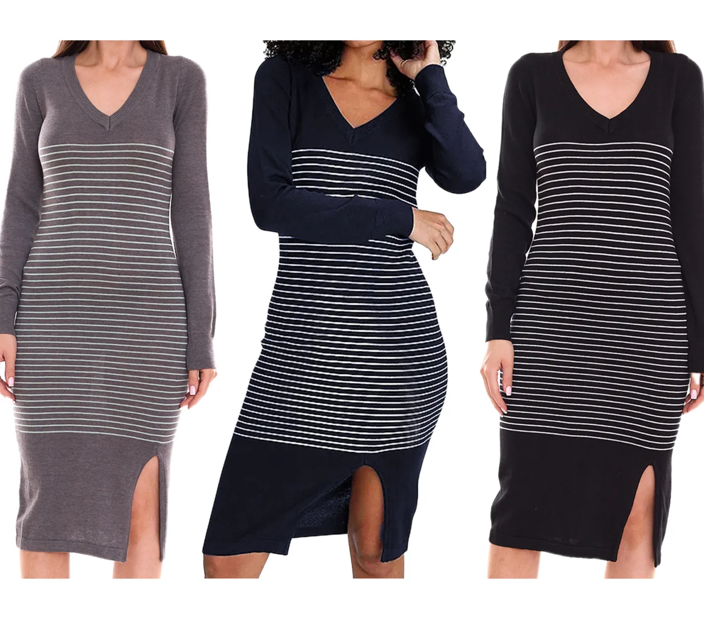 AjC Damen Pullover-Kleid gestreift Midi-Kleid Strick-Kleid in Grau, Schwarz oder Blau