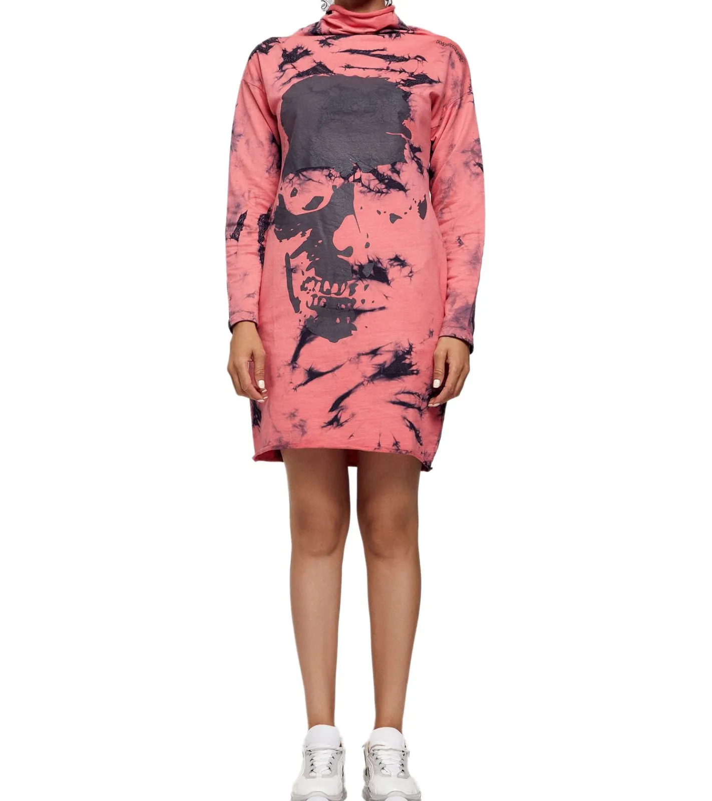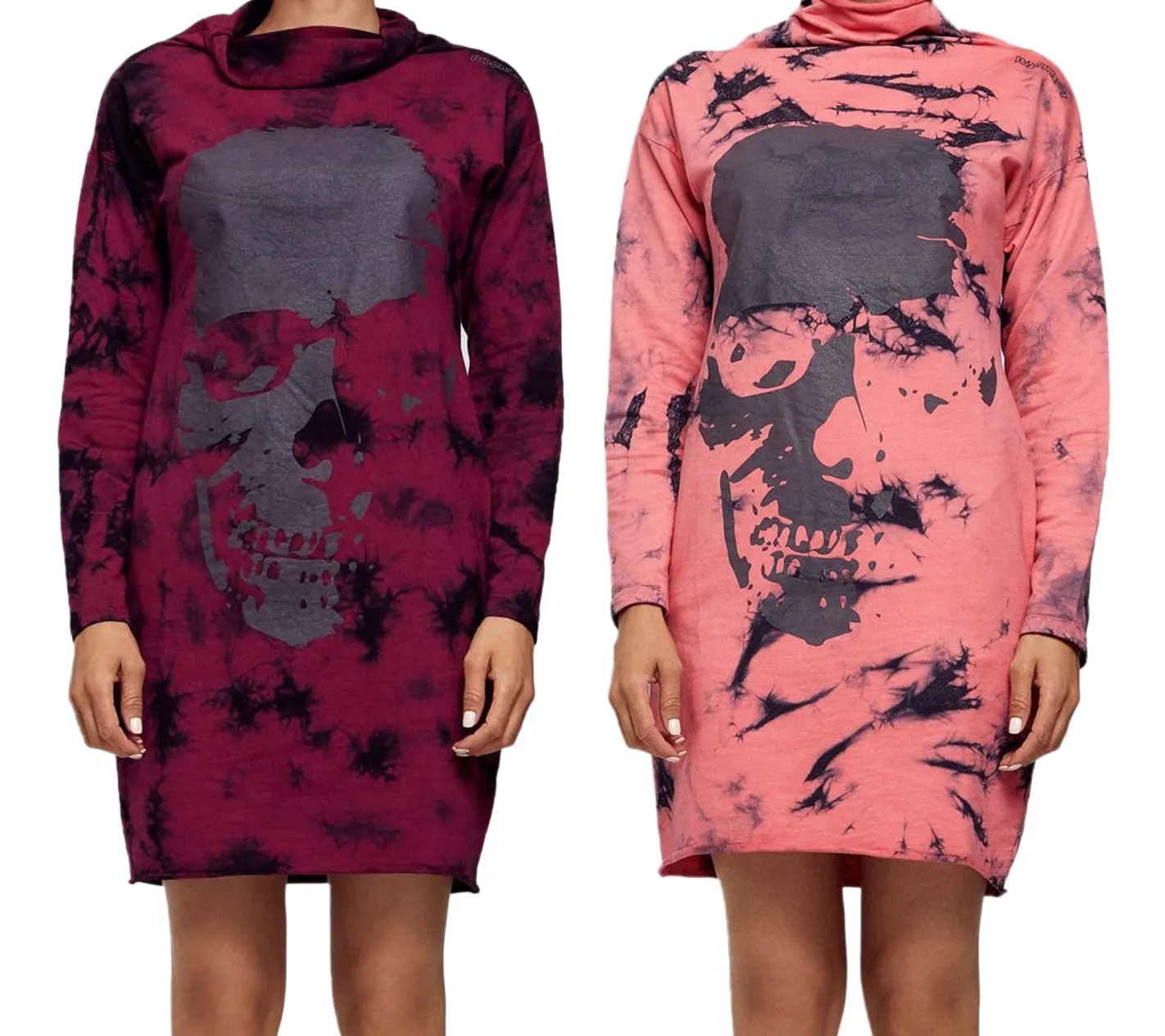 ROCKUPY Damen Sweat-Kleid mit Totenkopf-Print Pullover-Kleid Langarm-Kleid 393822 Bordeaux-Rot oder Rosa