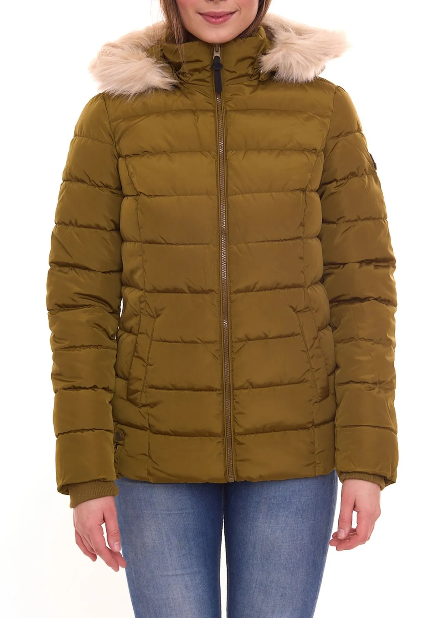 ALPENBLITZ Semeru Damen Outdoor-Jacke wattierte Winter-Jacke mit abnehmbarer Kapuze und einzeln abnehmbarem Kunstfell 12718035 Khaki
