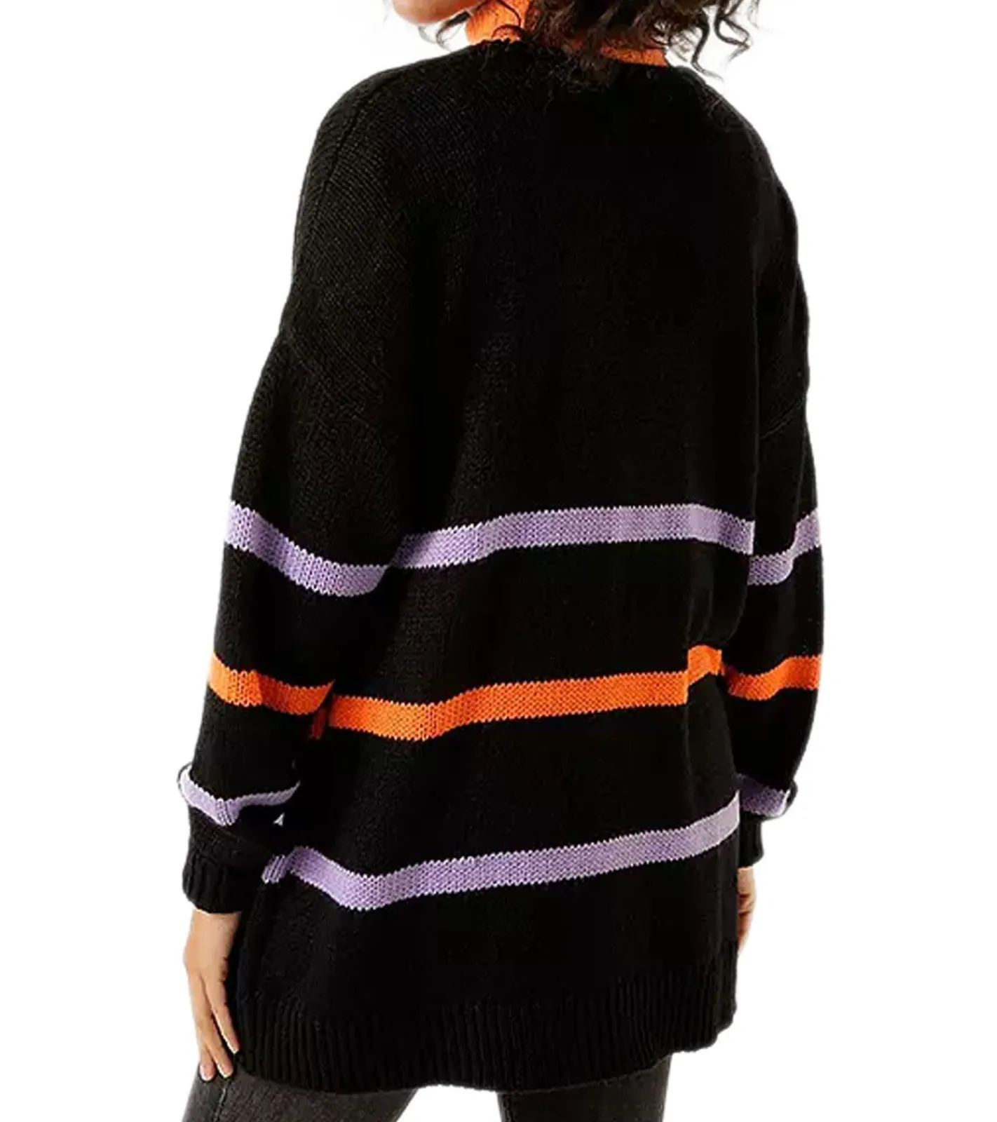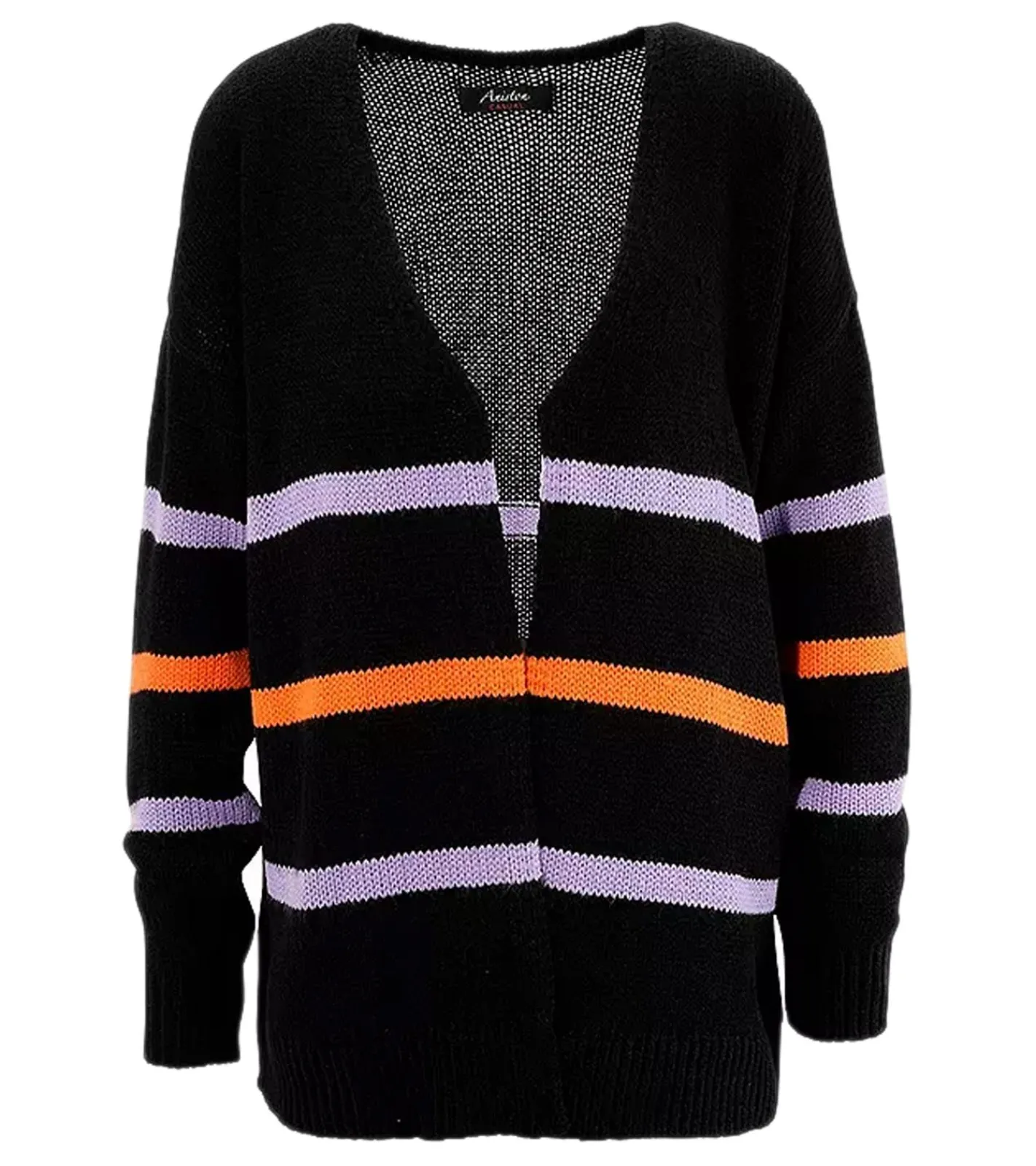 Aniston CASUAL Damen Strick-Jacke modischer Cardigan mit farbigen Streifen 95448519 Schwarz/Orange/Lila