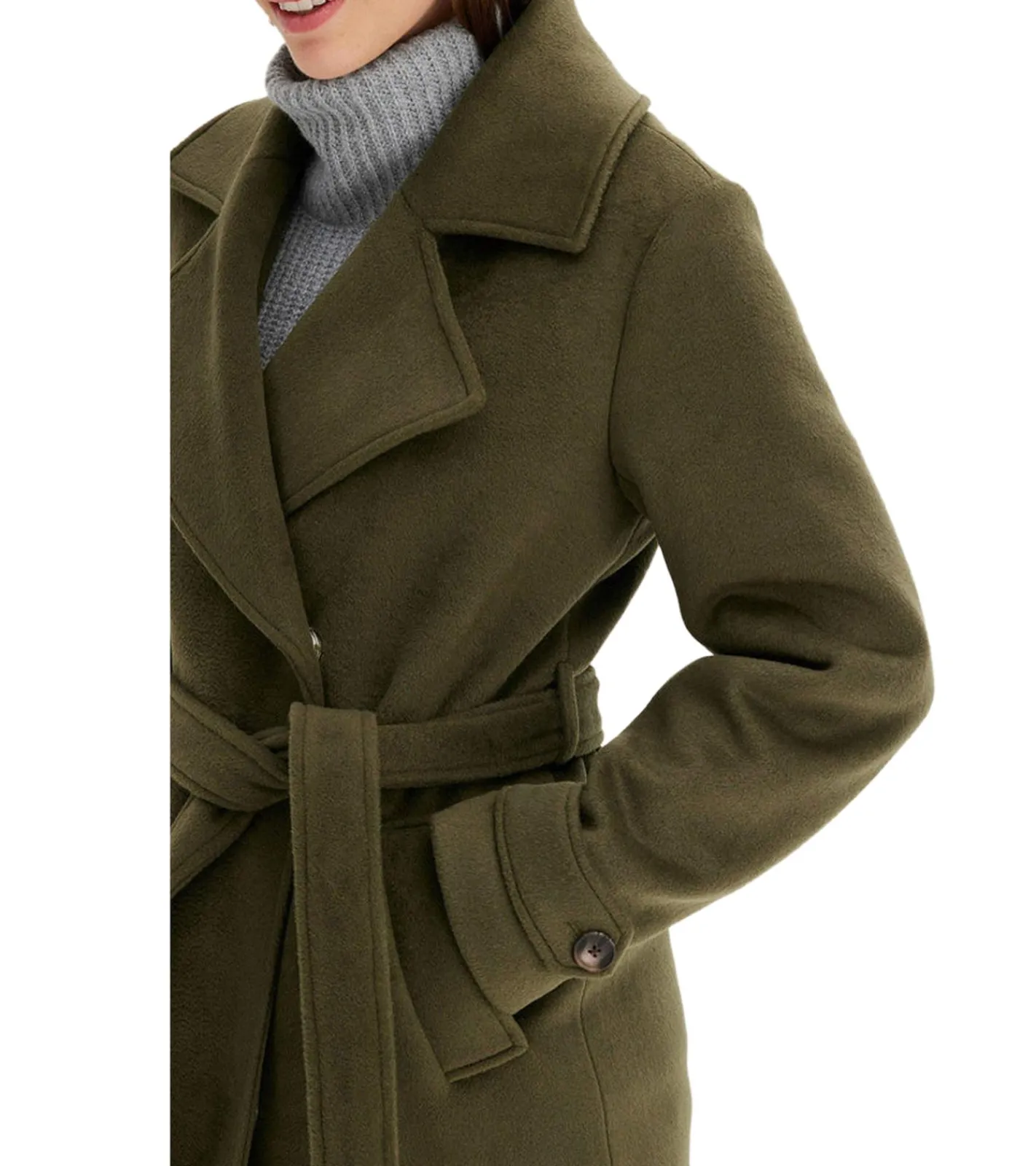 Damen Mantel in Wolloptik nachhaltiger Basic-Mantel mit Reverskragen Alltags-Jacke 907949 Olivgrün