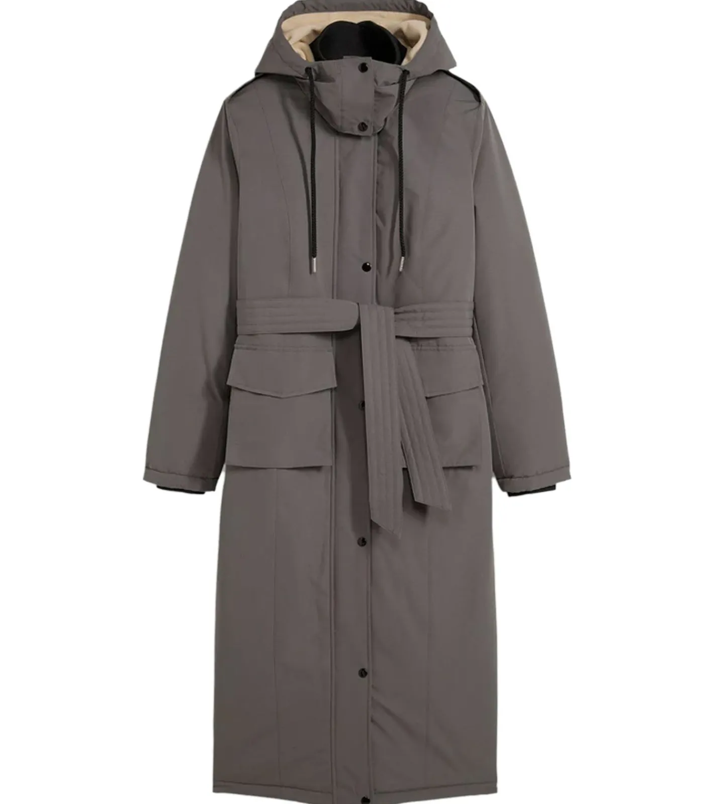 Damen Mantel mit Gürtel nachhaltiger Winter-Mantel mit Kapuze Outdoor-Jacke 956903 Dunkelgrau