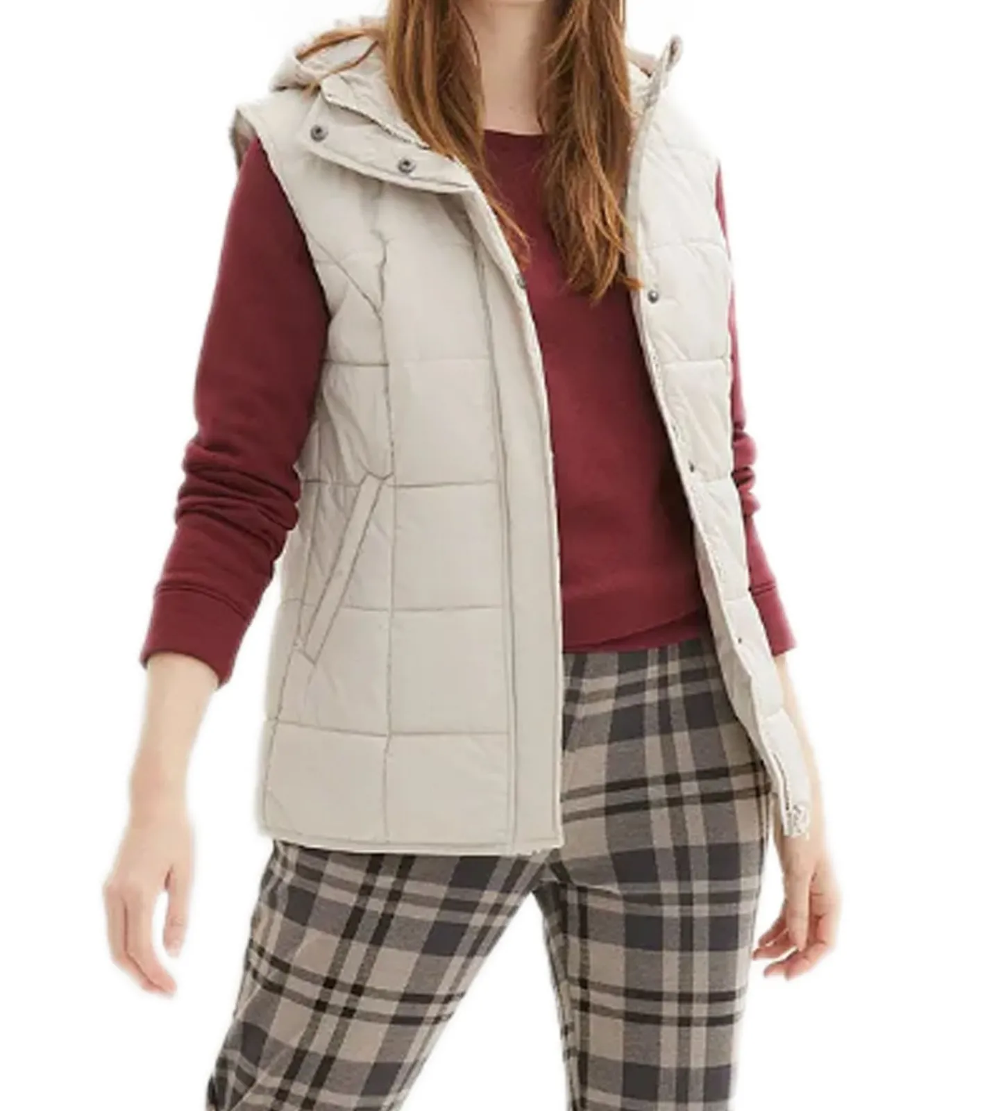 moderne Stepp-Weste für Damen Basic-Weste mit Kapuze Freizeit-Jacke 913322 Beige