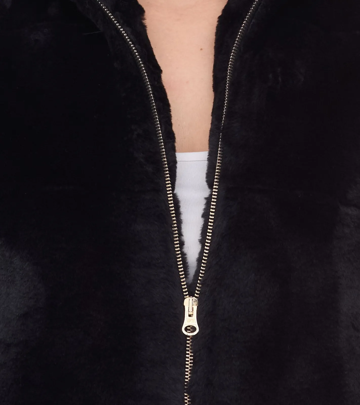 vestino Damen Kunstfell-Jacke mit Reißverschluss und Stehkragen Frühlings-Jacke 900710 Schwarz