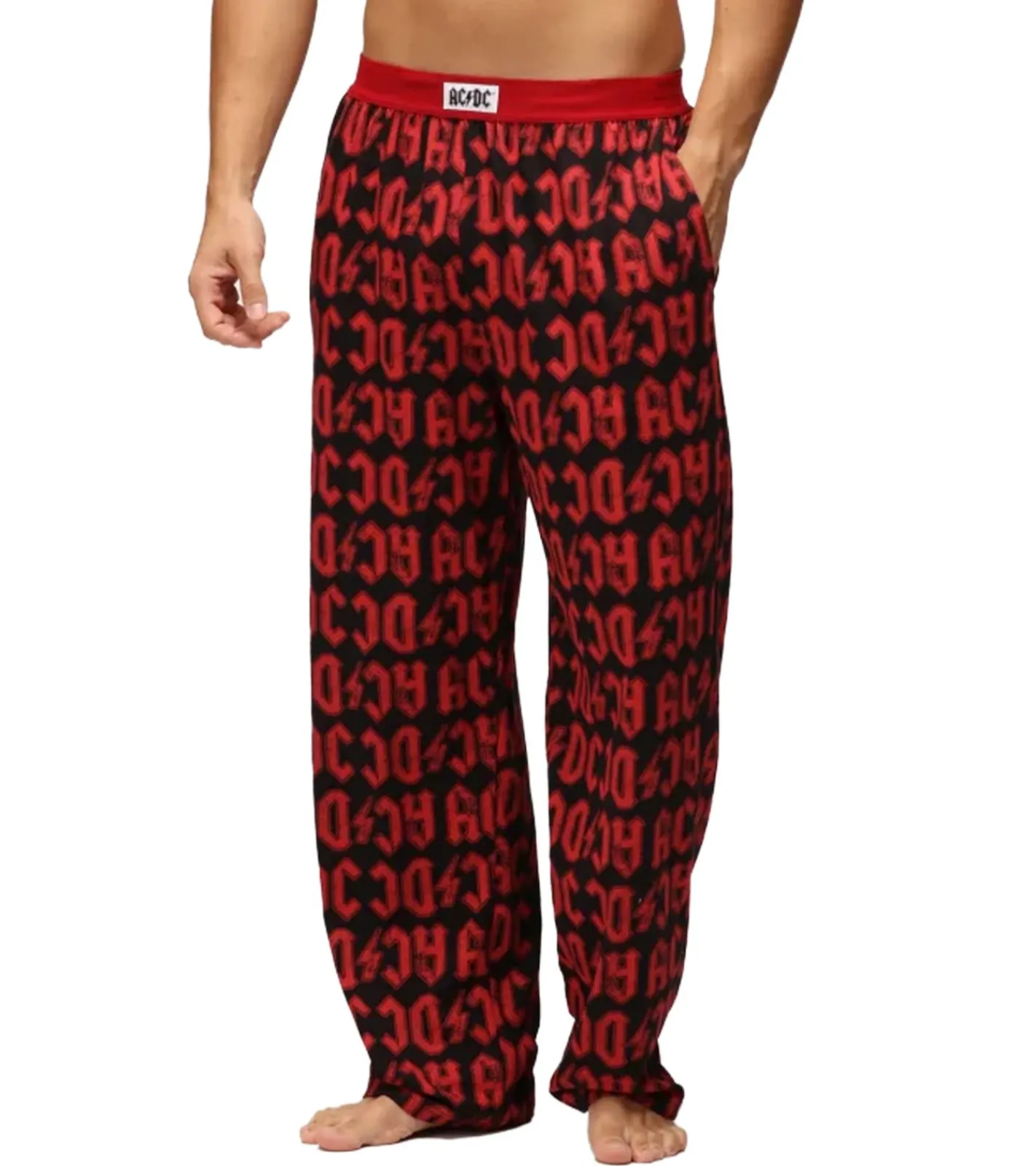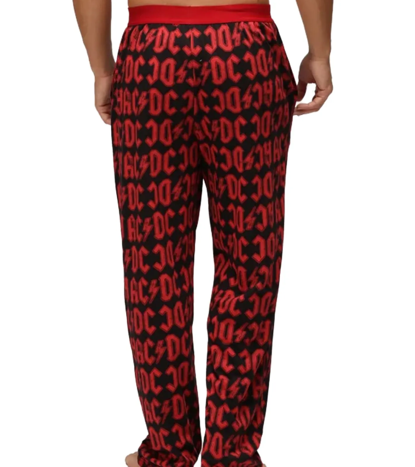 RE:COVERED X ACDC Loungepants Herren Schlafanzug-Hose mit ACDC Allover-Print Pyjama-Hose RCPER923 Schwarz/Rot