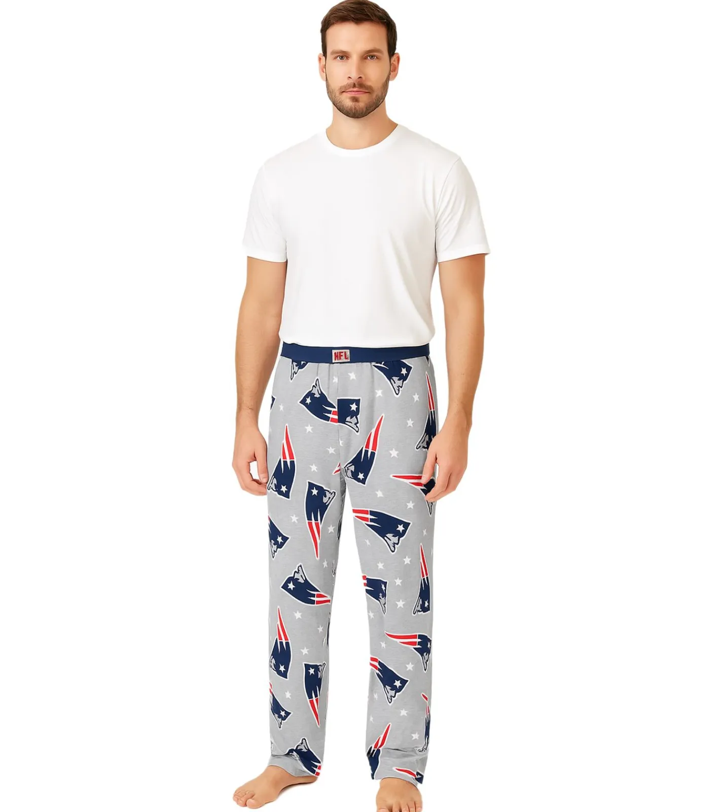 RE:COVERED X NFL New England Patriots Loungepants Herren Schlafanzug-Hose mit Team-Logo Baumwolle Pyjama-Hose RCNFL1399 Grau