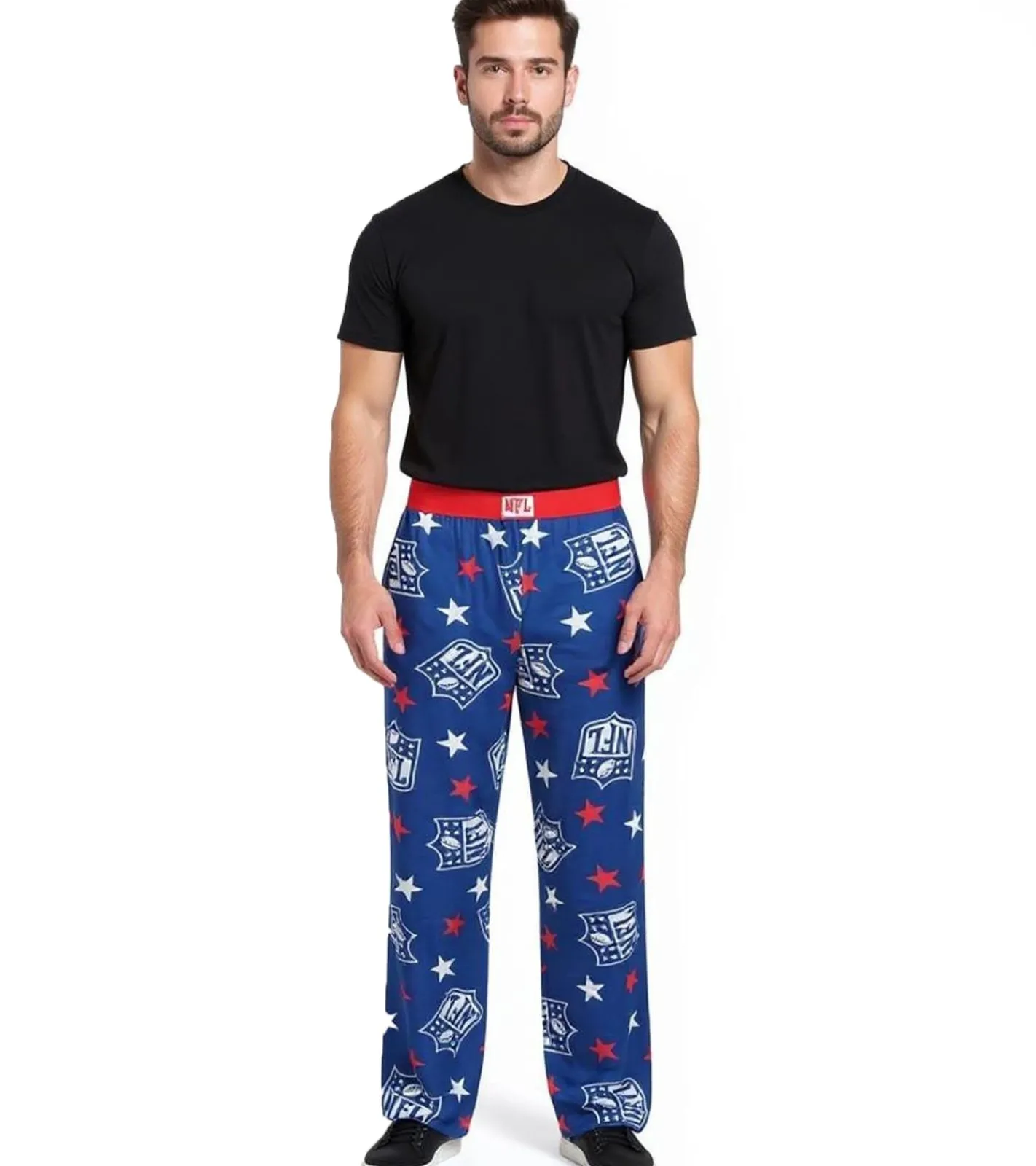 RE:COVERED X NFL Shield and Stars Loungepants Herren Schlafanzug-Hose mit NFL-Logo Baumwolle Pyjama-Hose RCNFL1401 Blau