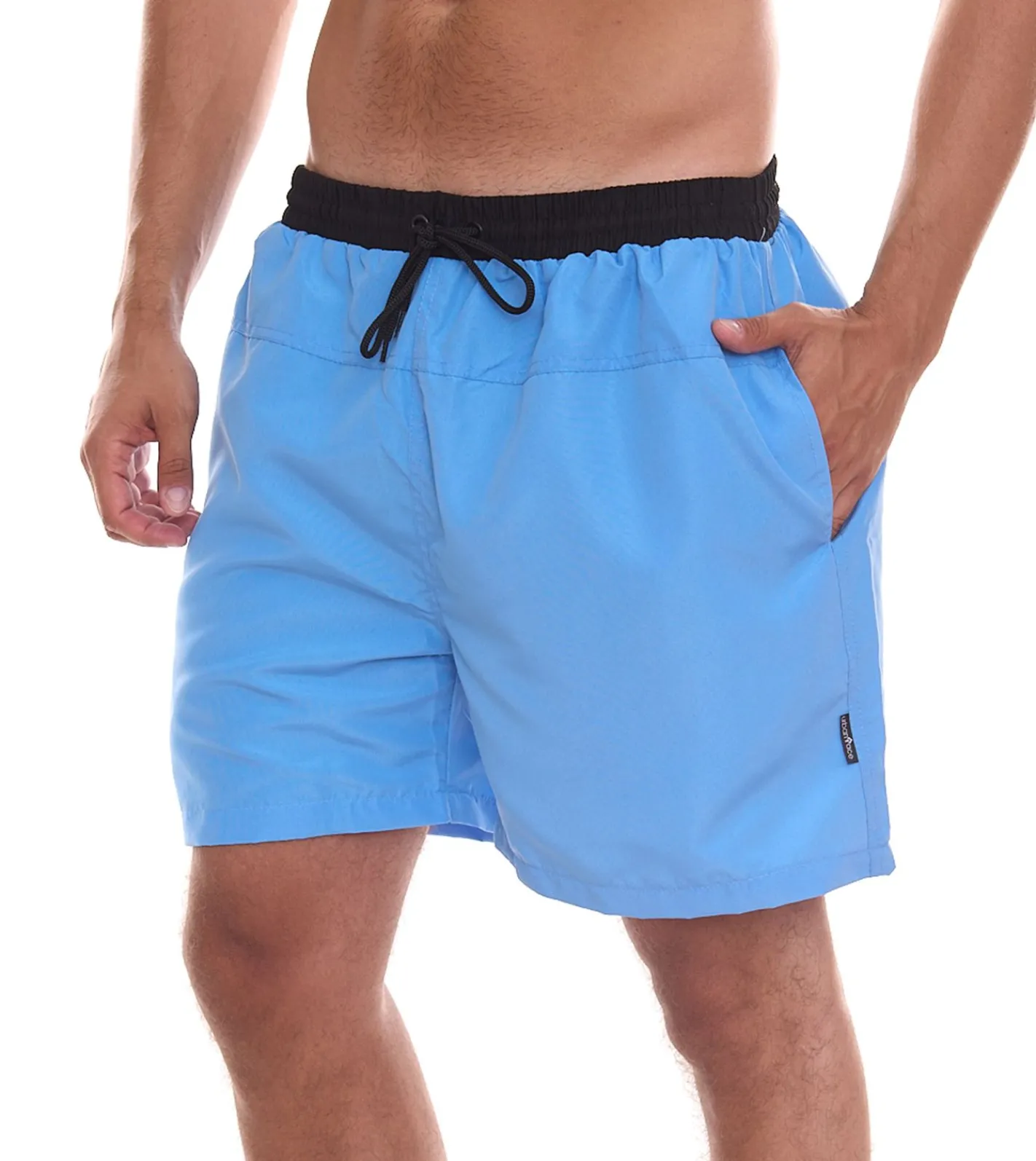 urban ace Herren Badeshorts schnell trocknende Bade-Hose mit Kordelzug ohne Innenslip Blau/Schwarz