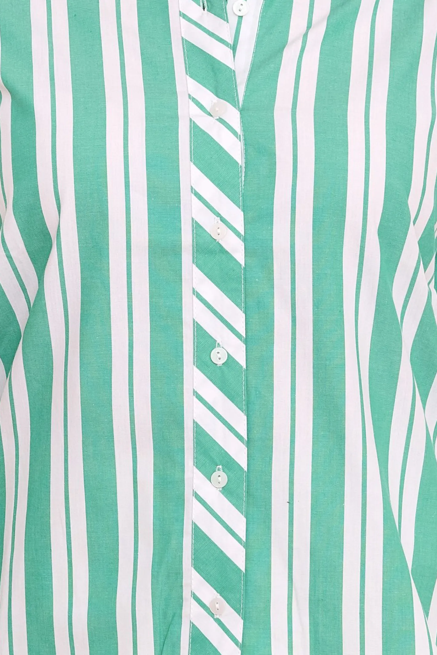 AjC Damen Bluse gestreiftes Langarm-Shirt Baumwolle mit kleinen Rüschen 36148235 Grün/Weiß