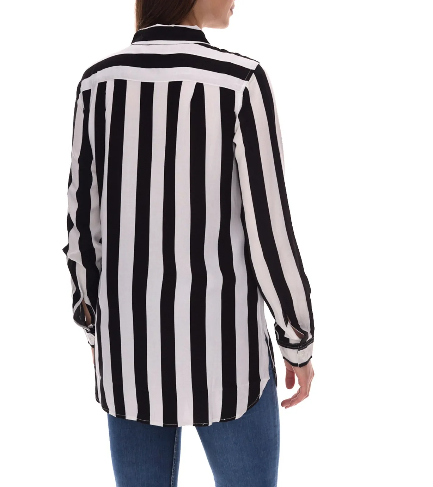 AjC Damen Hemd-Bluse gestreiftes Langarm-Hemd leichte Sommer-Bluse Freizeit-Bluse mit Knopfleiste 21945827 Weiß/Schwarz