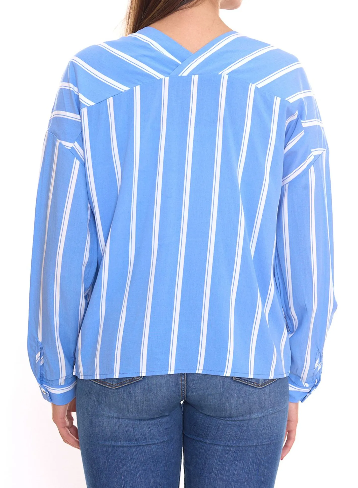 AjC Damen Schlupf-Bluse nachhaltige V-Neck Bluse gestreift 48173418 Blau/Weiß
