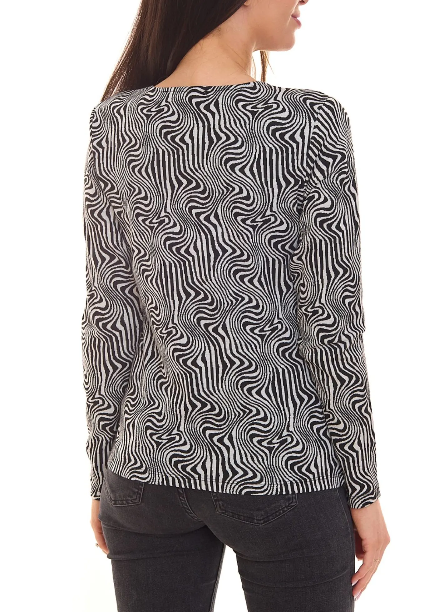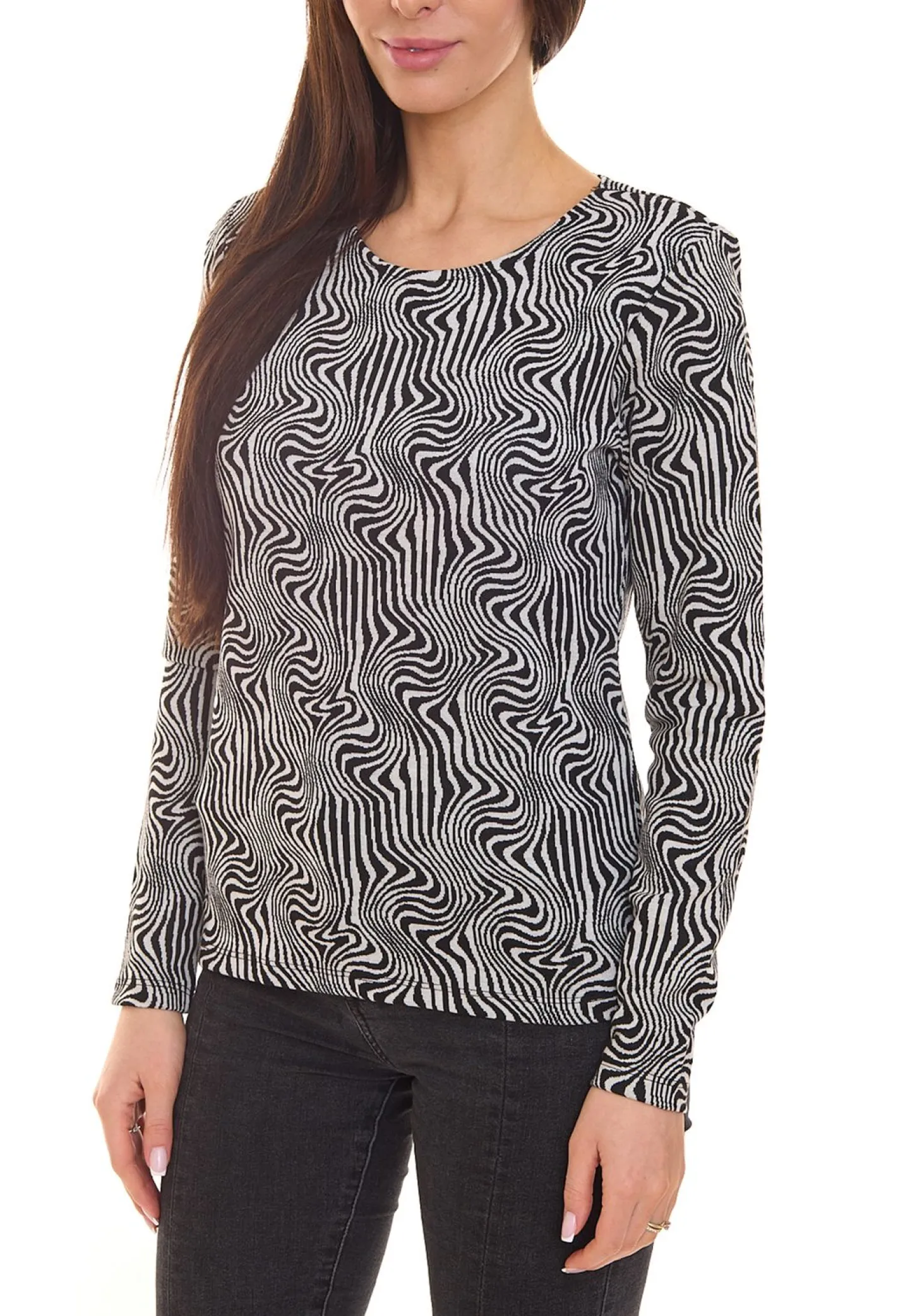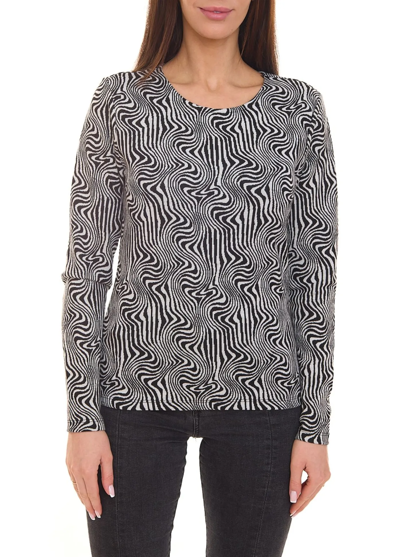 Aniston CASUAL Damen Langarm-Bluse stylische Damen Bluse mit Allover-Muster 56117949 Schwarz/Weiß