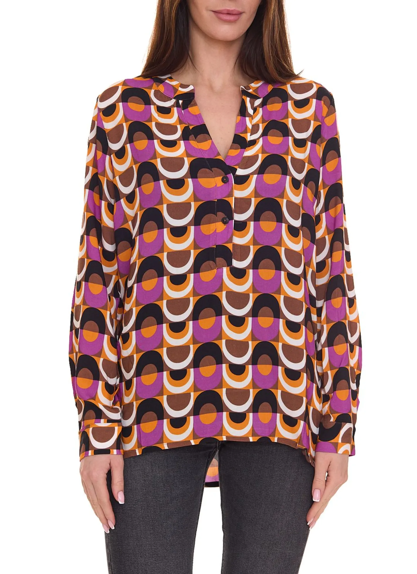 Aniston CASUAL Damen modische Freizeit-Bluse mit Allover-Muster 27550917 Bunt