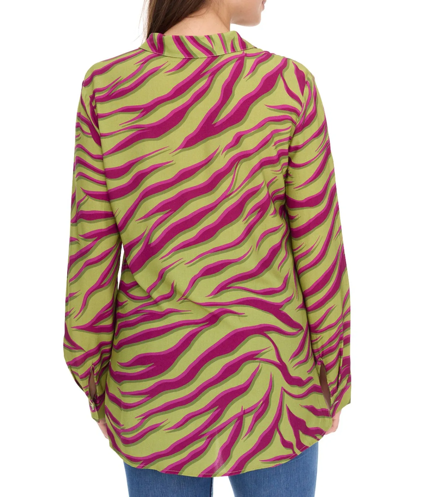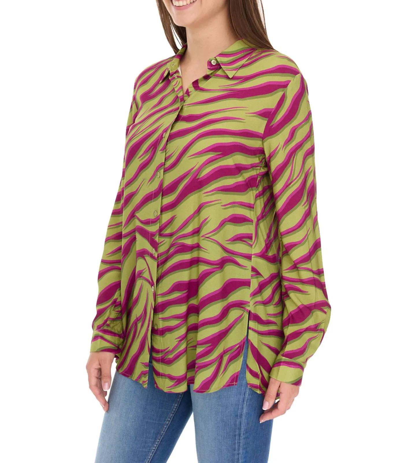 Aniston CASUAL FM Damen Bluse stylische Sommer-Bluse mit Kent-Kragen Alltags-Bluse 11026408 Grün/Lila