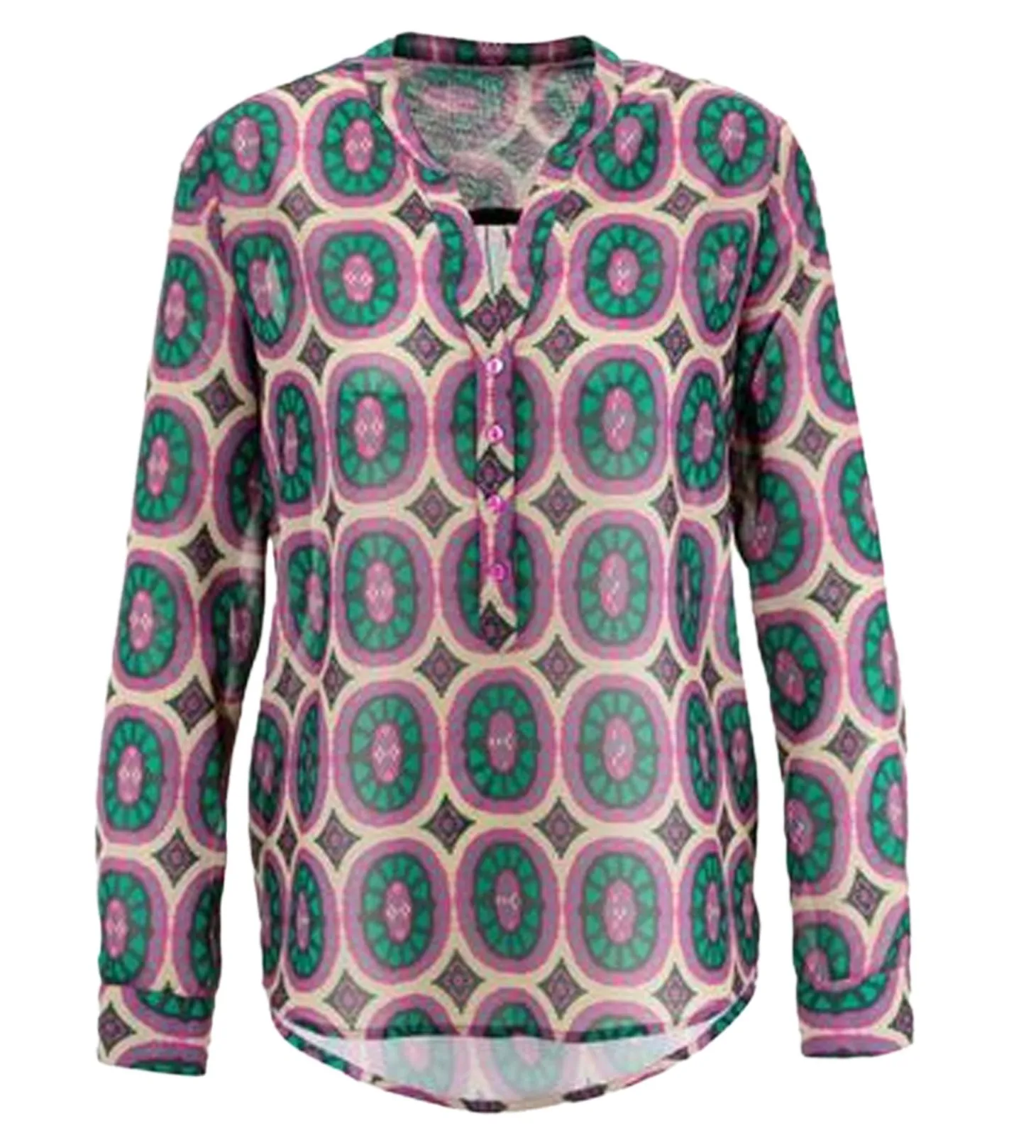 Aniston SELECTED Damen Bluse Sommer-Bluse modisches Langarm-Shirt 91819328 Grün/Lila/Beige