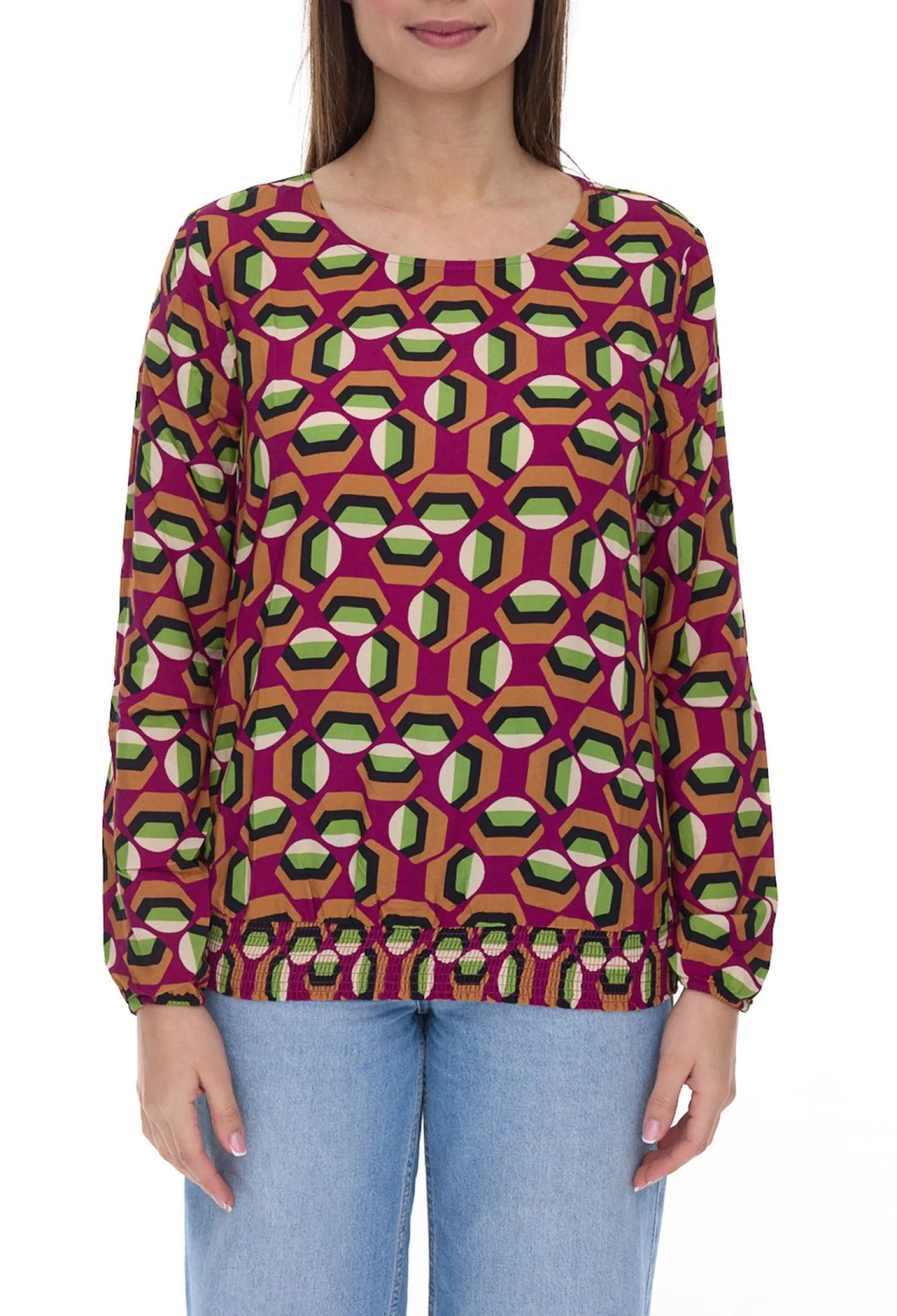 Aniston SELECTED Damen Blusen-Shirt Sommer-Bluse mit Gummizug 72981042 Rot/Bunt