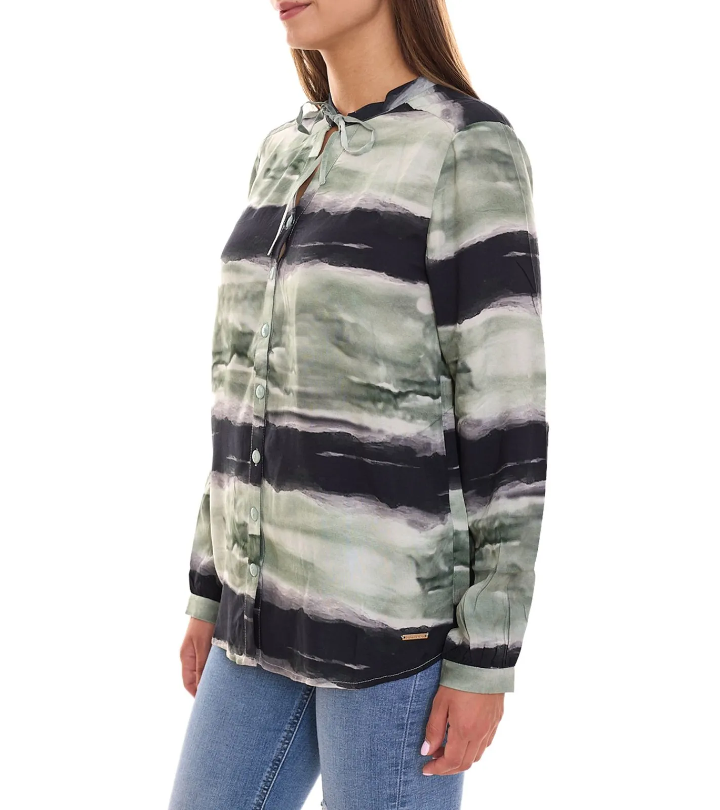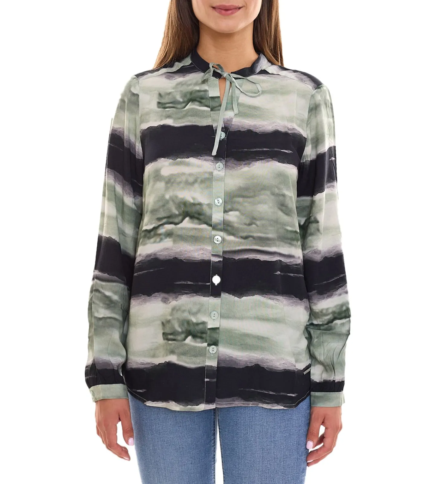 bruno banani Damen Langarm-Bluse im Batik-Look Sommershirt 31663237 Grün/Schwarz