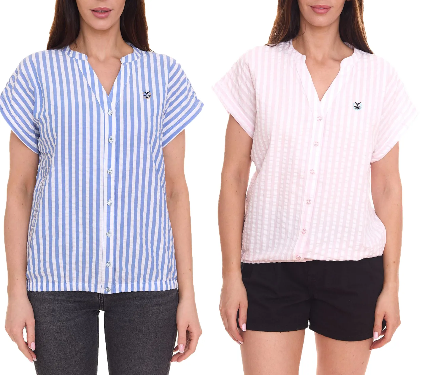 DELMAO Damen Sommer-Bluse gestreift Kurzarm-Bluse Sommer-Shirt Rosa/Weiß oder Blau/Weiß