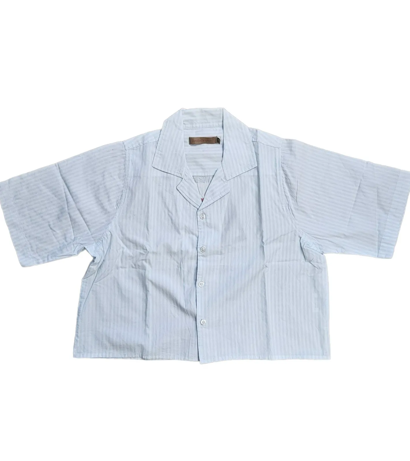 Denim Project Damen Baumwoll-Shirt Crop-Shirt mit Rüschen Kurzarm-Shirt DPW10023-015 W076 Weiß