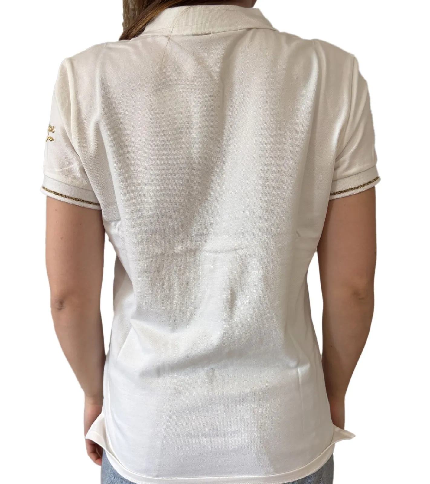 Les Tropeziennes Damen Baumwoll-Shirt Polo-Shirt mit Lurex-Details Kurzarm-Shirt 1 112 3097C F Weiß