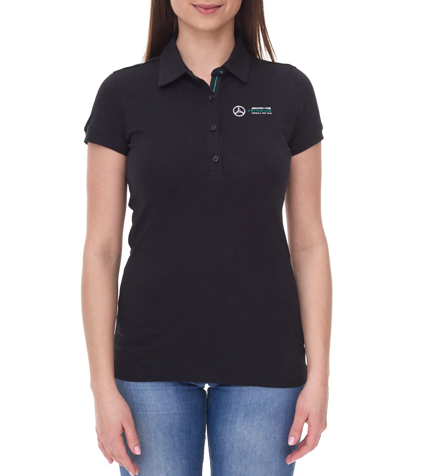 Mercedes-Benz AMG Petronas F1 MAPF1 Classic-Polo Damen Baumwoll-Shirt Polo-Shirt mit Team-Logos Kurzarm-Shirt 701202236 001 Schwarz
