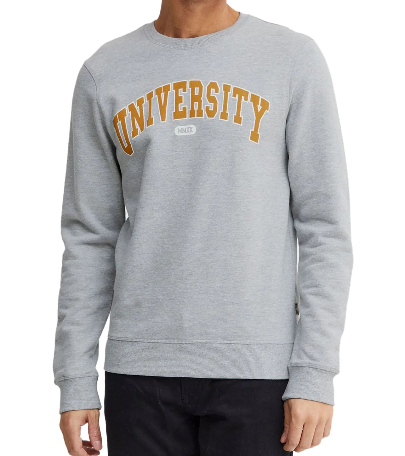11 PROJECT Davin Herren Sweater mit UNIVERSITY Frontprint Baumwoll-Sweatshirt 20715943 200274 Grau