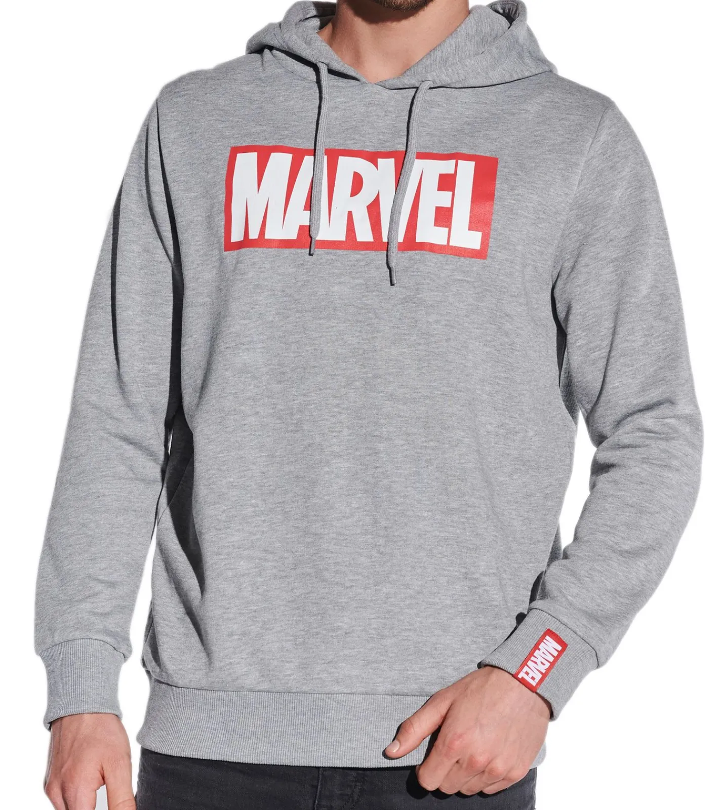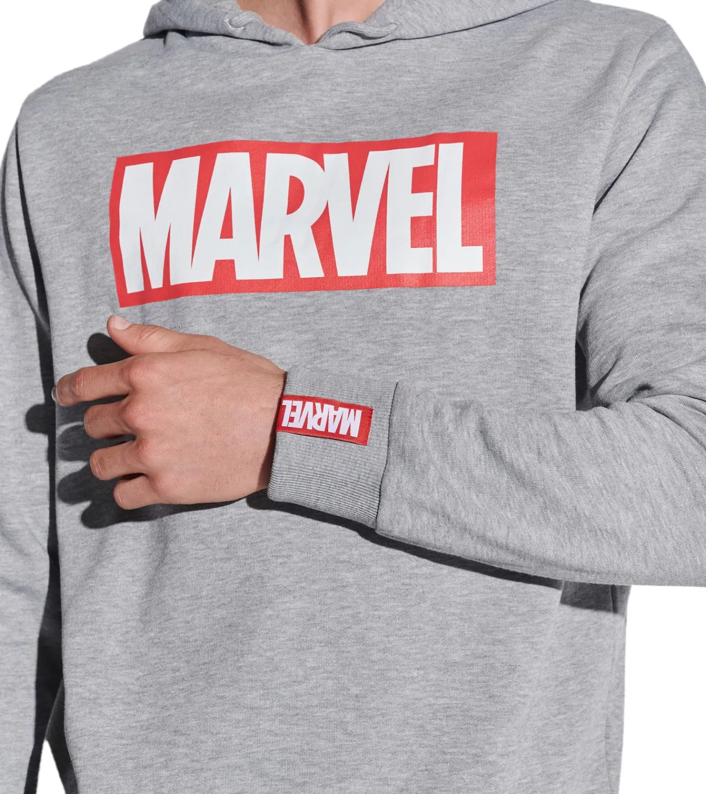 COURSE Marvel Herren Hoodie im melierten Design Kapuzen-Pullover mit großem Marvel-Schriftzug und Patch Baumwoll-Sweater 4848 Grau