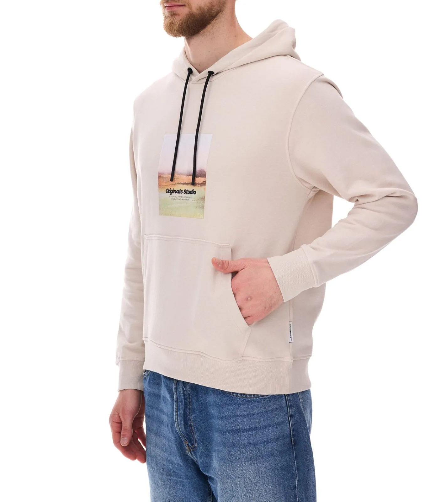 JACK & JONES Esterbro Newton Herren Kapuzen-Pullover Baumwoll-Pullover mit Originals Studio Print 12266801 Beige